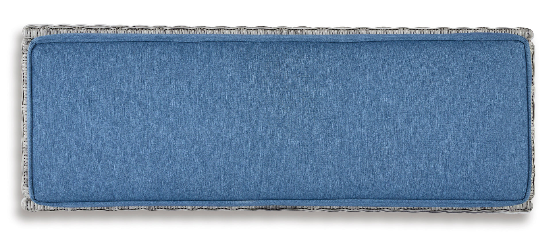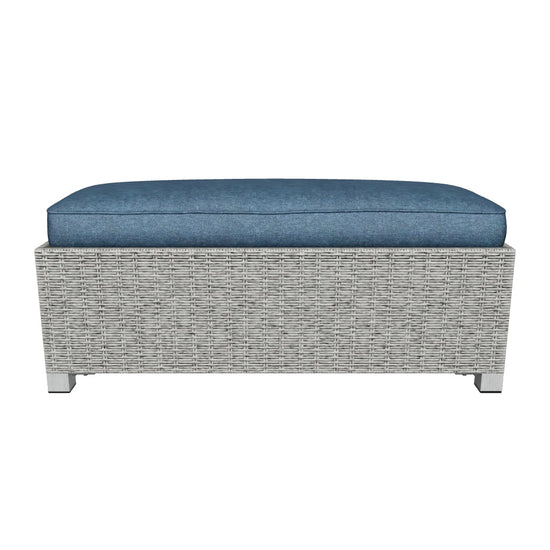 Details & OverviewIndulge in backyard bliss. The Naples Beach outdoor bench has a straightforward sense of style with its light gray resin wicker and wood-look finish. Blue high-performance Nuvella+™ fabric covers the cushioned top, weathering the elements and keeping your aesthetic casually cool.