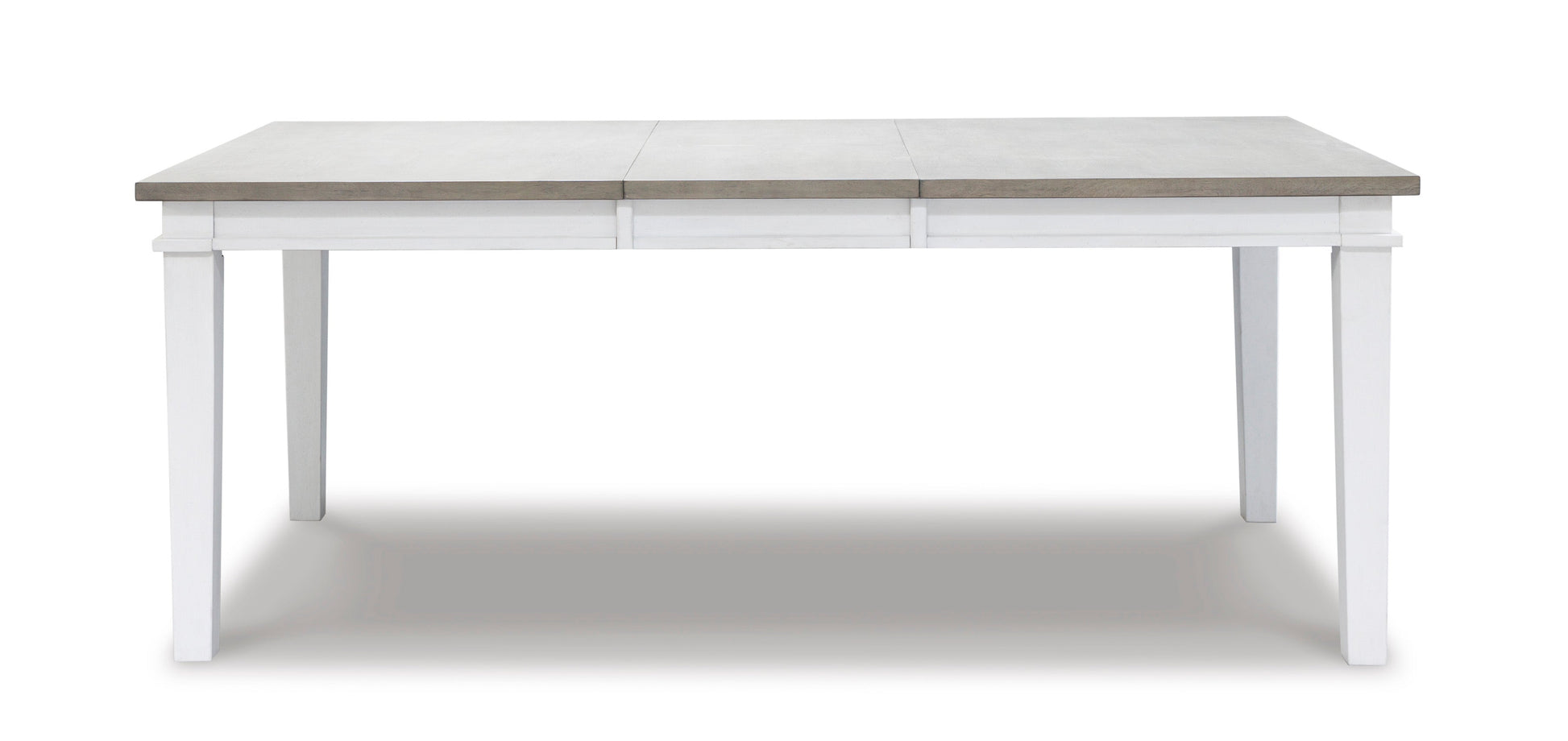 Embrace uncluttered character. This dining extension table emphasizes sheer simplicity with its clean-lined form and sleek self-storing leaf. Tranquil neutrals create a soothing two-tone finish. Designed to complement aesthetics from minimalist to modern farmhouse, this table is a simply striking feast for the eyes.
