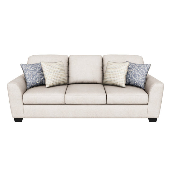 Need a piece to perfectly anchor your home's casual contemporary aesthetic? The pinnacle of chic comfort, the Panola sofa has a universal appeal thanks to plush chenille upholstery in a neutral hue. Its simple, streamlined design, with wide party arms, is sure to appeal to your relaxed approach to modern flair. Boldly patterned accent pillows complete the look. All that's left for you to do is sprawl out solo or with friends and revel in the feeling of style made simple.