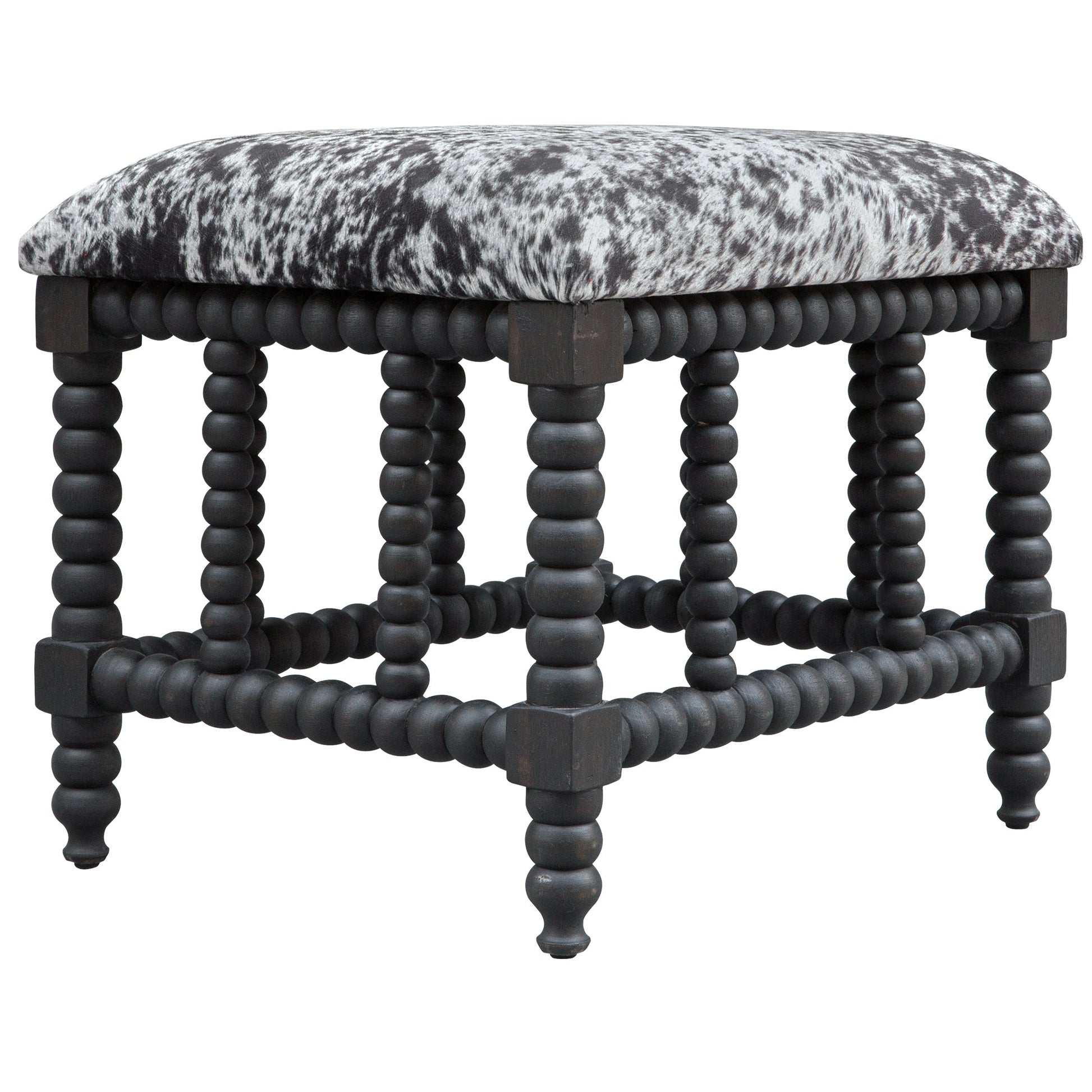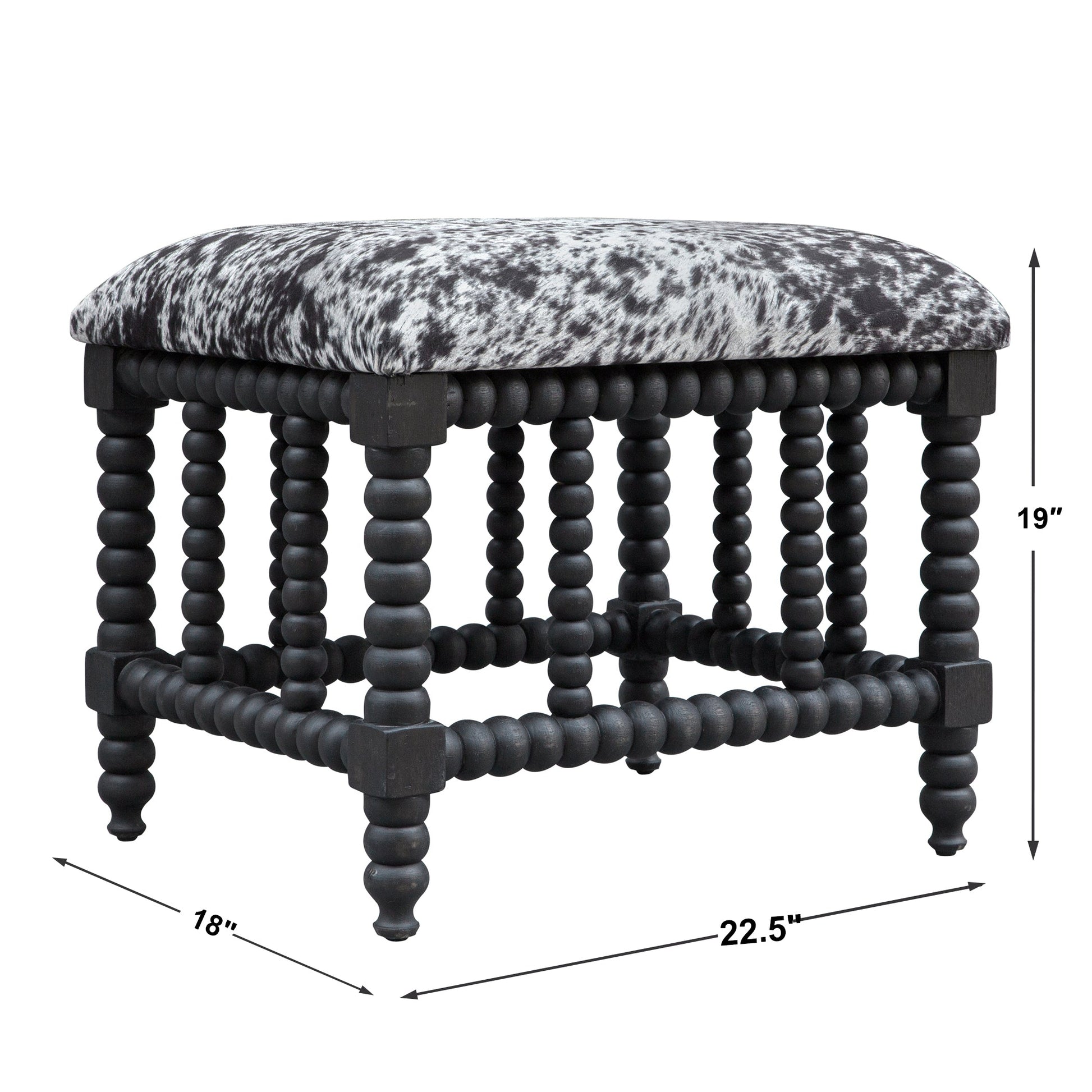 Details & OverviewRanch And Modern Lodge Styles Converge To Create This Plush, Upholstered Bench. The Cushioned Seat Is Wrapped In A Charcoal Gray And White Faux Cow Hide, Accented By A Matte Black Stained Base Turned From Solid Plantation-grown Mahogany Wood.