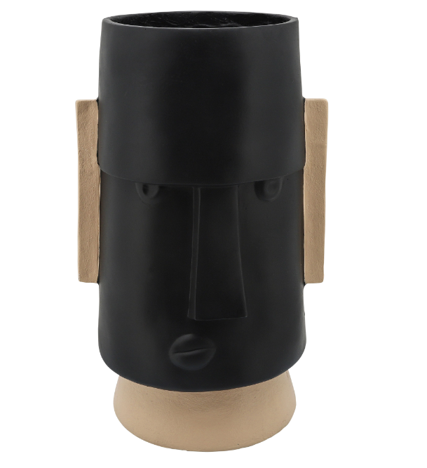 Details & Overviewوعاء زهور من الراتنج بقطر 10 بوصات على شكل وجه كوميدي غاضب، أسود