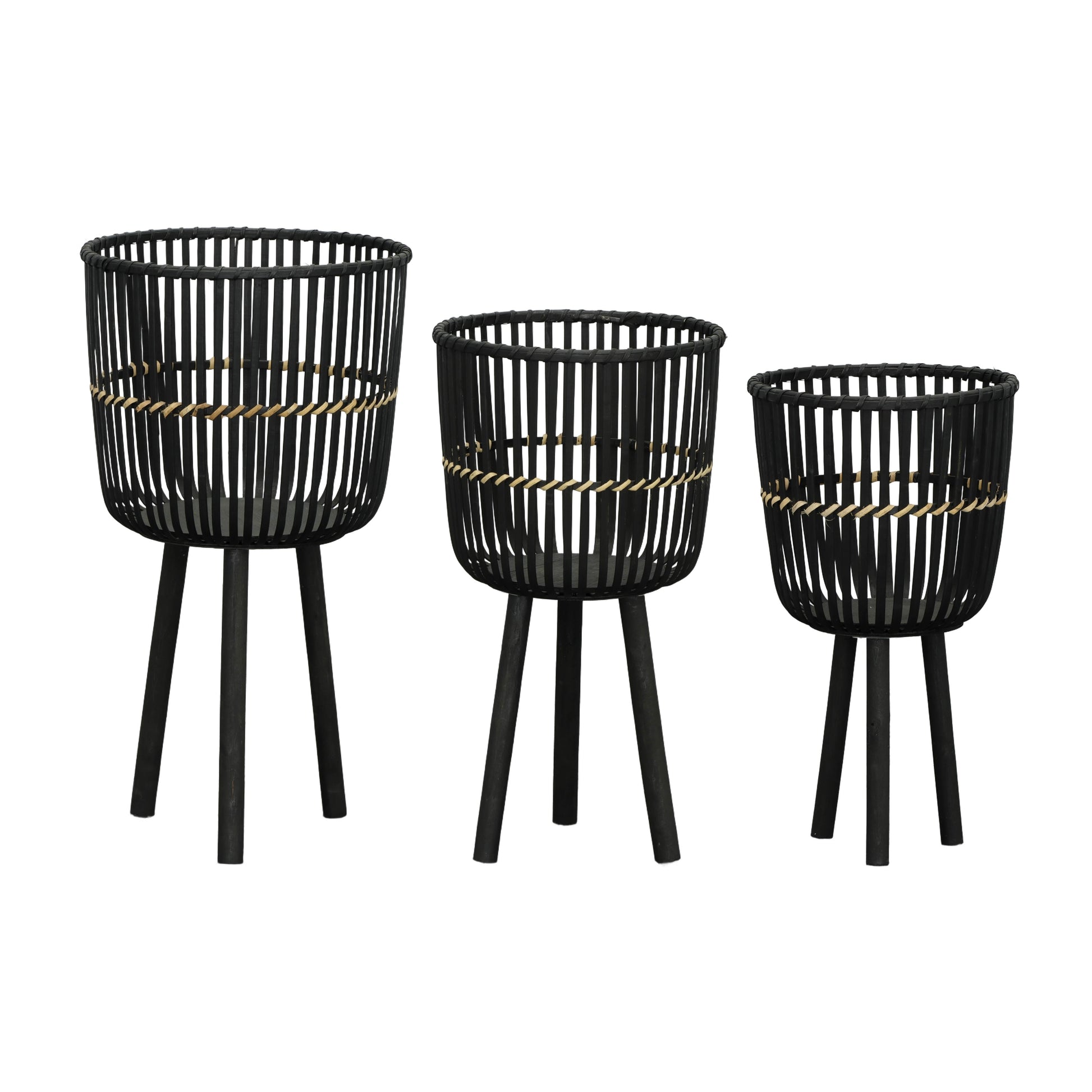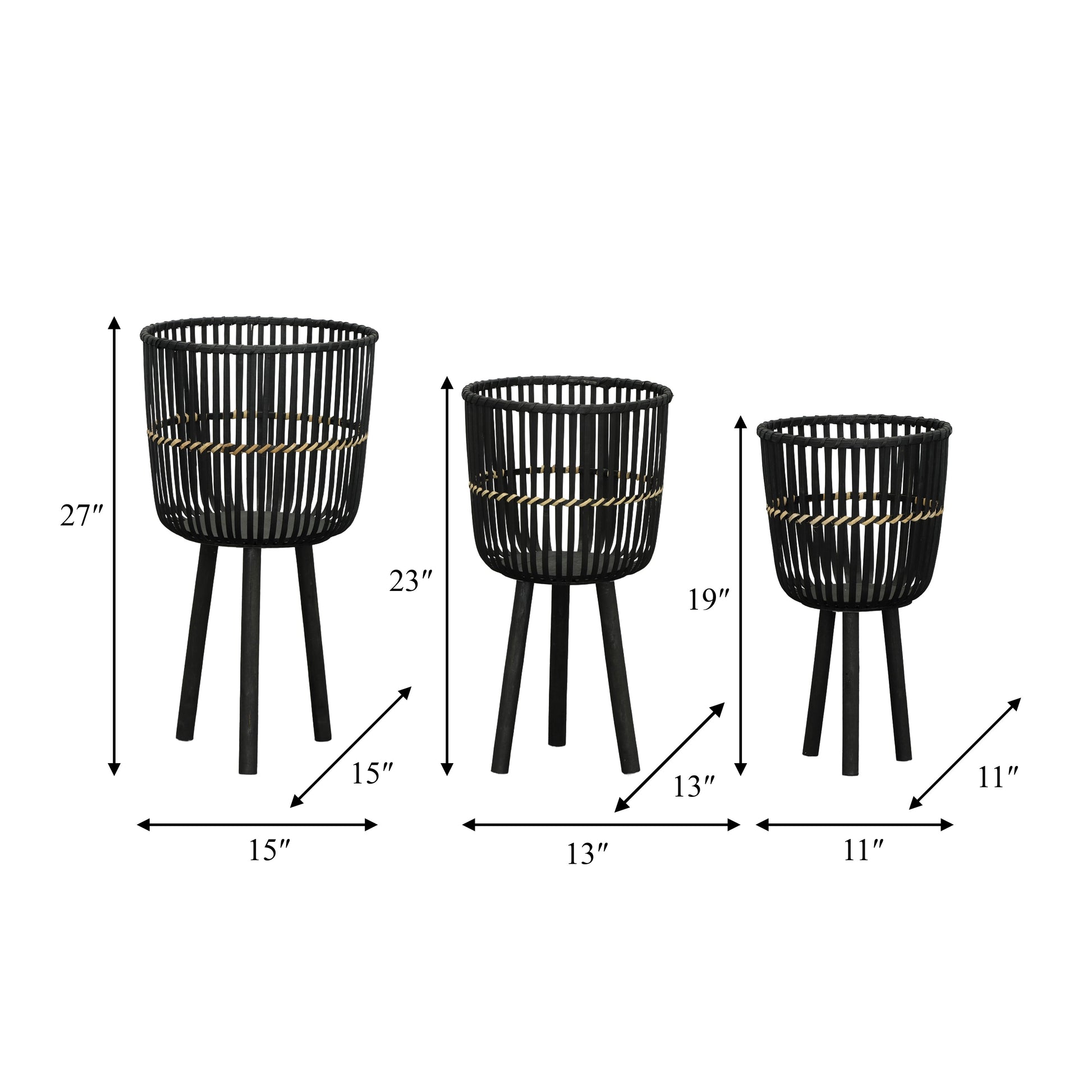 S/3 مزارع بأقدام من الخيزران 11/13/15 بوصة، أسود