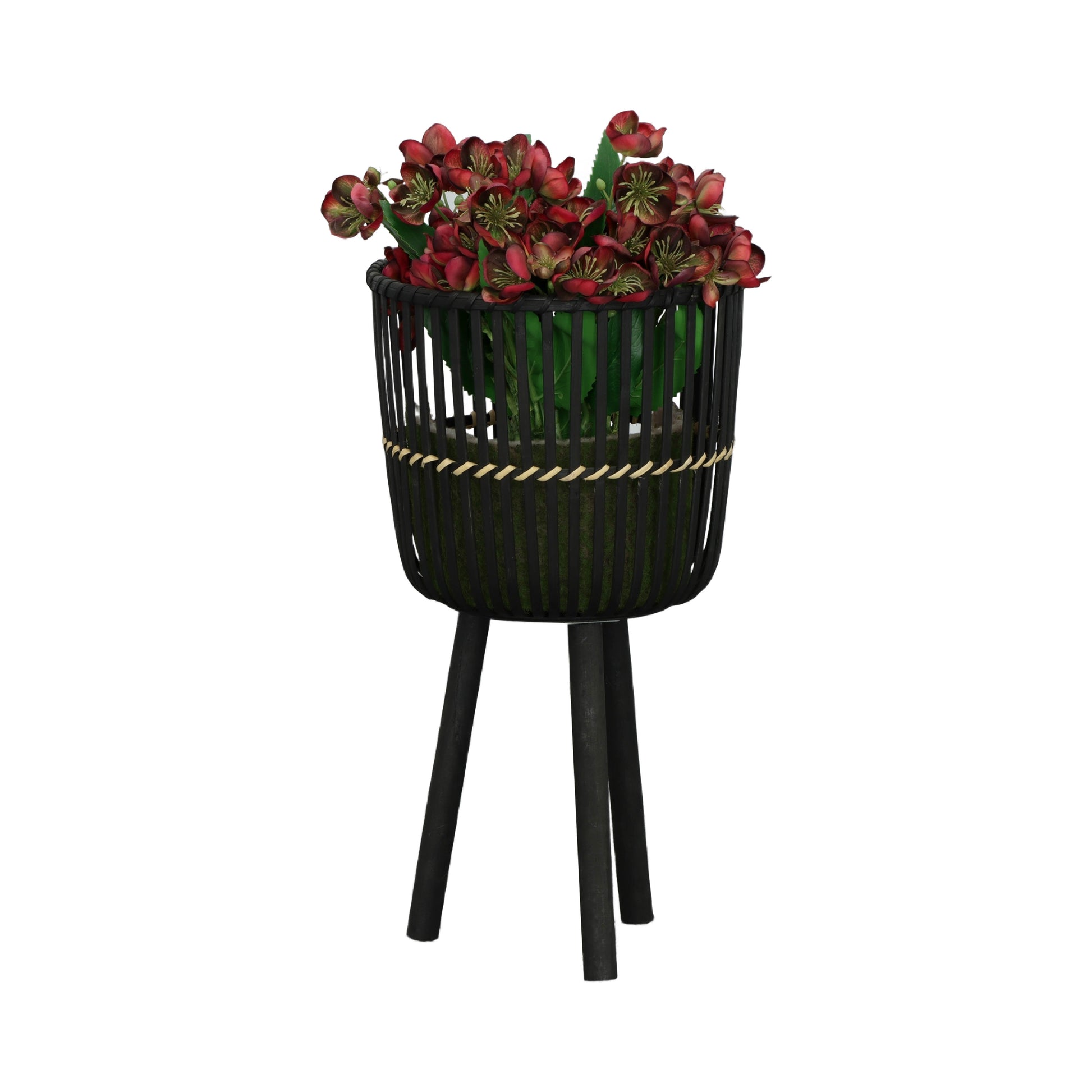 أحواض زرع صغيرة بقاعدة من الخيزران مقاس 11/13/15 بوصة، أسود