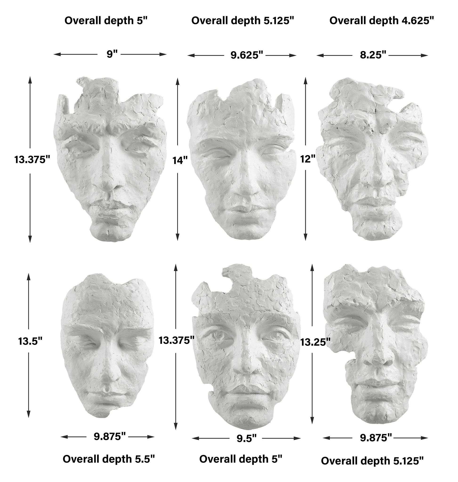 Inspired by works from modern art galleries, these masks are handcrafted with a sculpted look in a matte white finish with noticeable textural details.Item Dimension (cm ) :