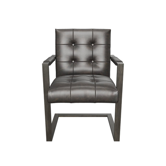 For fans of urban industrial design, the Starmore chair steals the show. Its metal C-frame in a blackened gunmetal finish is sleek, sculptural and ultra modern. Crafted for looks and comfort, the tufted box seat, wrapped in a “weathered” faux leather upholstery, is loaded with retro chic flair. Whether paired with Starmore’s home office desk or dining room table, it’s a feast for the eyes.