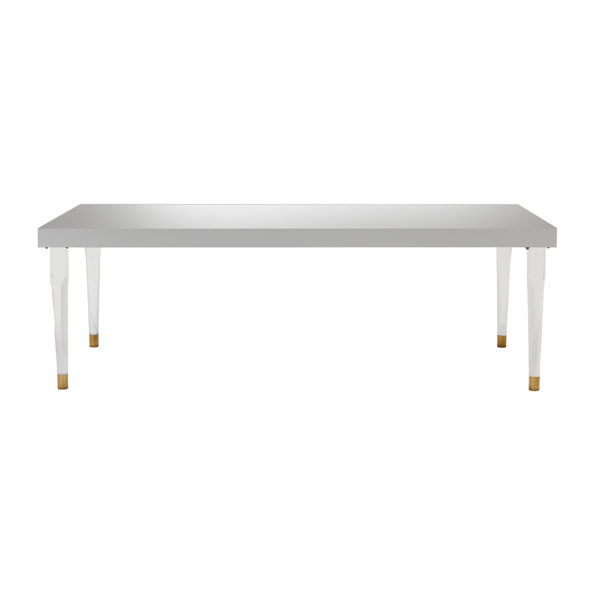 Inspired by our love for Hollywood glam decor the Spindle Tabby table is the statement piece you've been looking for. Its glossy white lacquer top complemented by its four transparent acrylic legs, combine perfectly to add a transitional flair to your dining space.