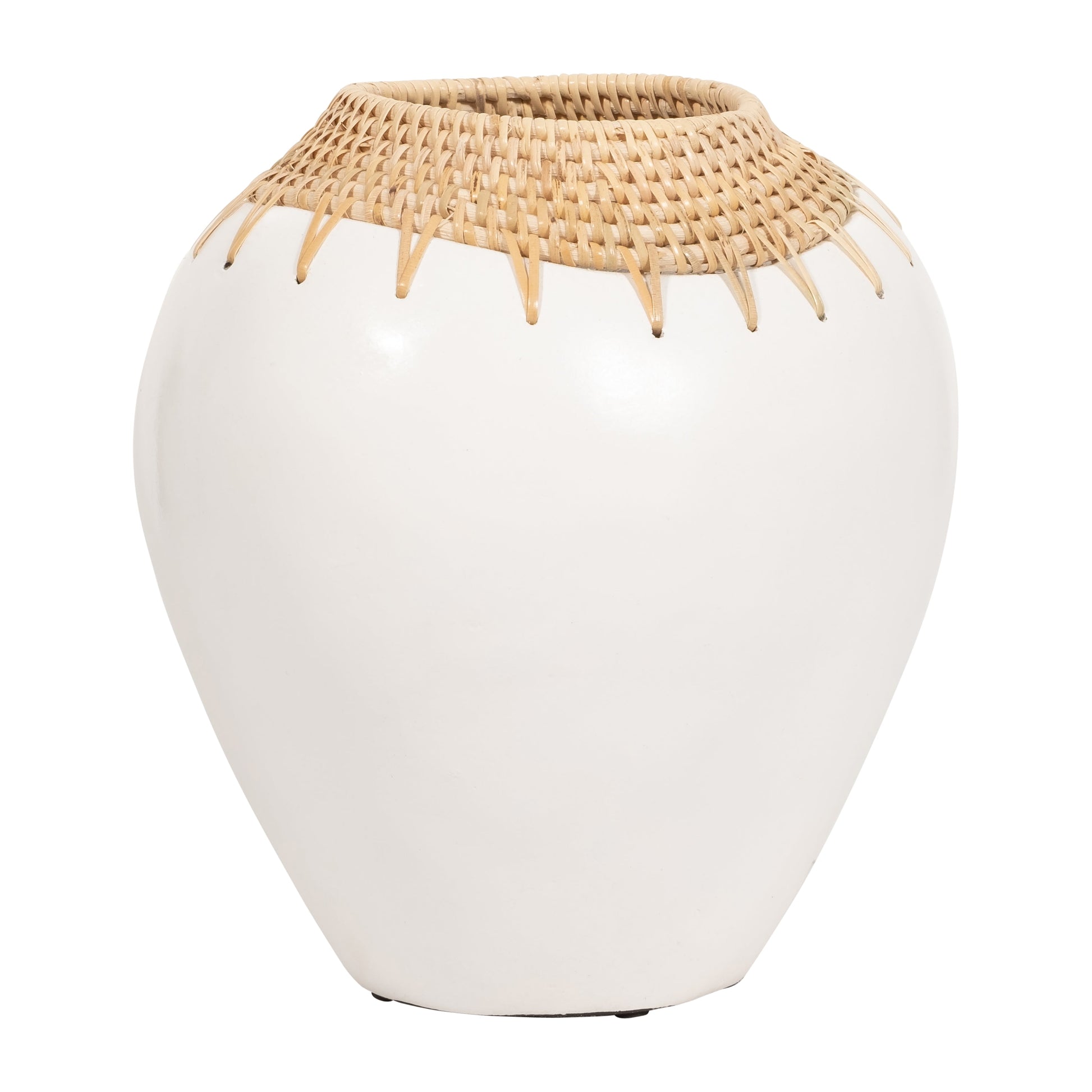 TERRACOTTA, 12"H VASE, WHITE/BROWN