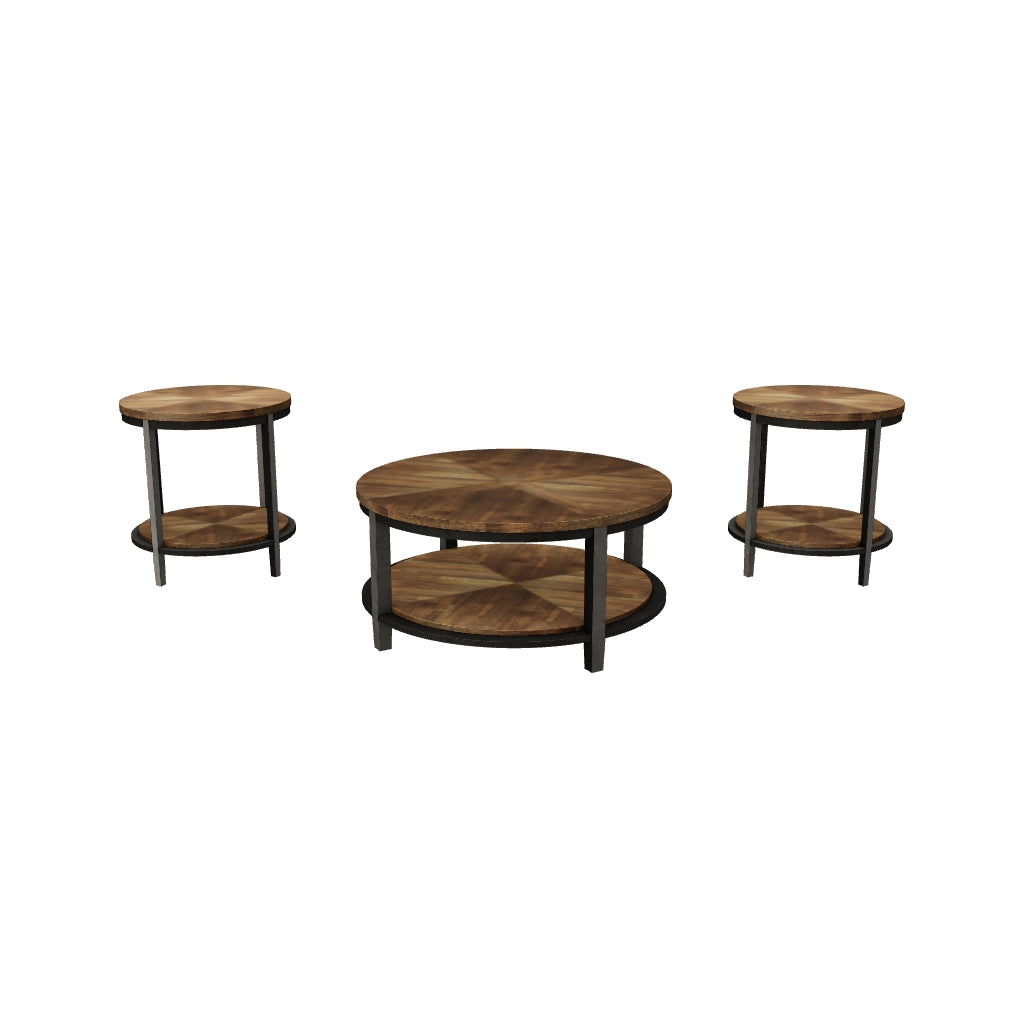 Includes 1 coffee table and 2 end tables;Made of veneers, wood and engineered wood;Natural acacia finish;Dark bronze-tone wood frame;Fixed shelf;Assembly required