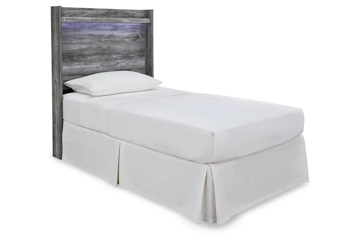 Rest in the beachy style of the Baystorm twin panel headboard. Its driftwood and surfer-inspired smoky finish and cool LED lighting give this headboard a rustic look that's perfect for creating an island oasis. Clean lines and modern charm blend for an authentic look to be enjoyed for years to come.