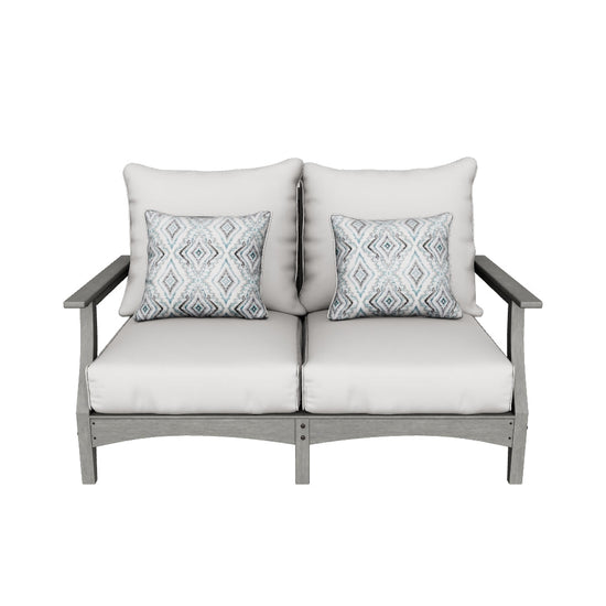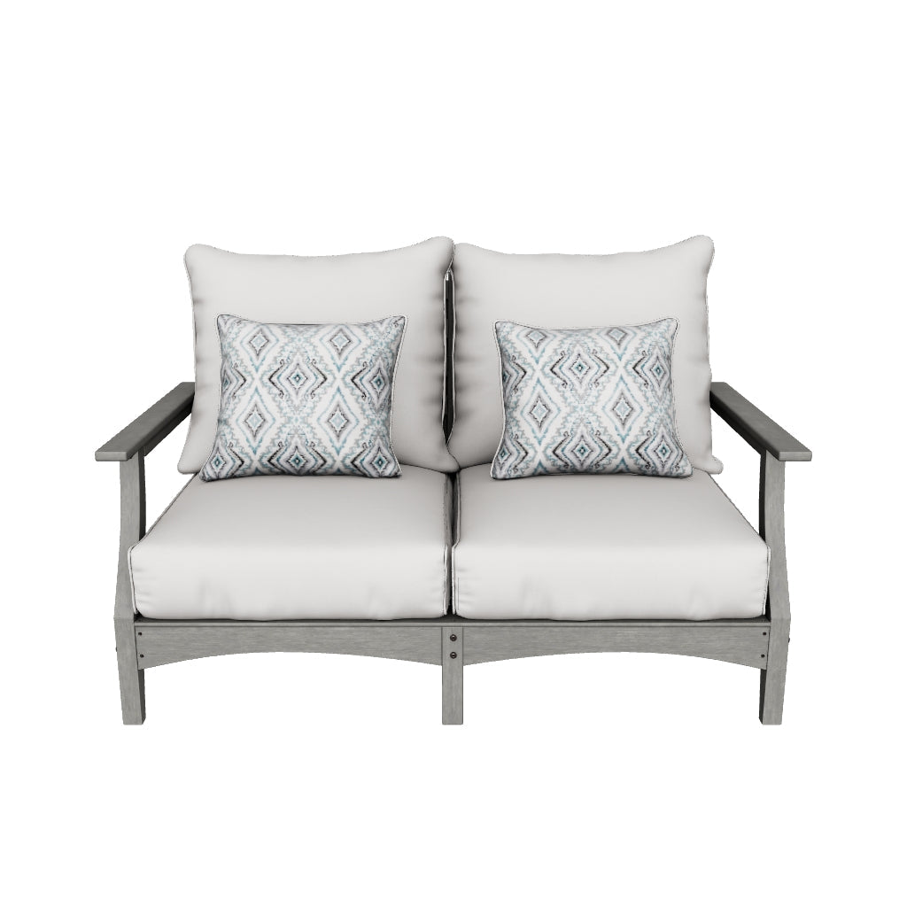 It’s the dawn of a new day for gray. Embrace the style trend with the Visola outdoor loveseat. Crafted of HDPE material that combines the exceptional durability and weather resistance you need with the “wood look” you love, this comfortably cushioned loveseat takes outdoor living to a whole new level. Rest assured, the thick seat and back cushions and throw pillows are wrapped in our exclusive Nuvella® high-performance fabric that’s fade resistant, stain resistant and a breeze to clean.