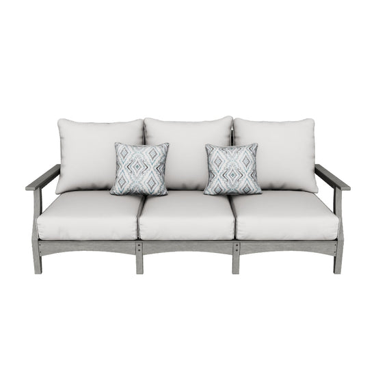 فجر جديد للون الرمادي. انضم إلى أحدث صيحات الموضة مع أريكة فيزولا الخارجية. مصنوعة من مادة البولي إيثيلين عالي الكثافة (HDPE) التي تجمع بين المتانة الاستثنائية ومقاومة العوامل الجوية التي تحتاجها، مع مظهر الخشب الذي تعشقه، هذه الأريكة المريحة ذات الوسائد المبطنة ترتقي بتجربة الجلوس في الهواء الطلق إلى مستوى جديد كليًا. كن مطمئنًا، فالوسائد السميكة للمقعد والظهر والوسائد الصغيرة مغلفة بنسيج نوفيلا® الحصري عالي الأداء، المقاوم للبهتان والبقع، وسهل التنظيف للغاية.