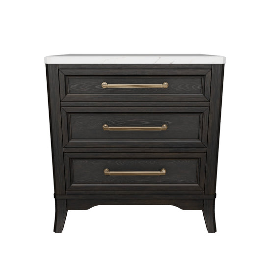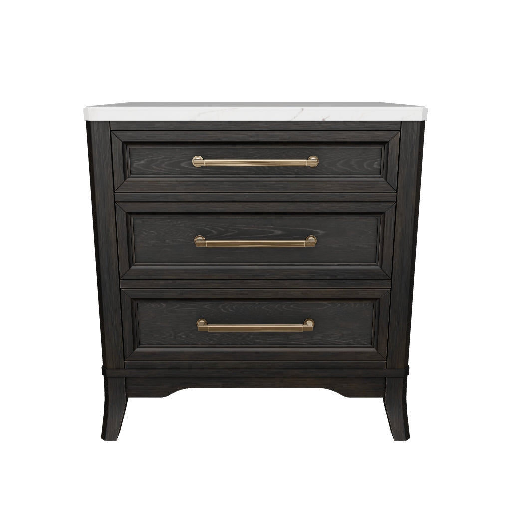For those who love the classic profiles of traditional design—but want to forego the overly formal details—behold the Welltern nightstand. A natural white marble top and saber legs add distinctive touches to this beautiful take on urban revival design. The rich layered black finish on its textured wood grain surface with rubbed-through edges offers a subtle sense of gently aged charm. An integrated power outlet and USB charging keep your devices energized all evening long.
