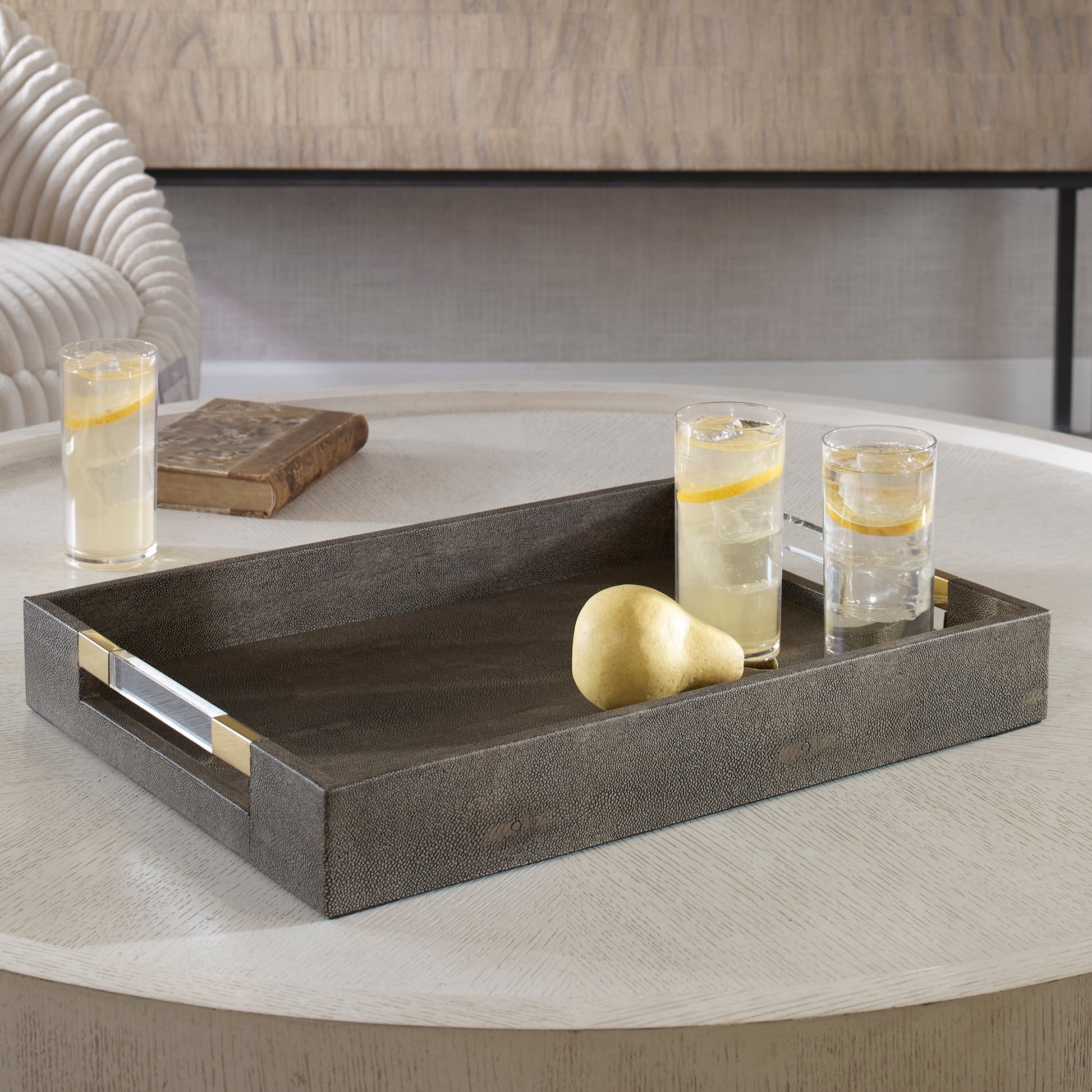 Details & OverviewTray Is Covered In An Elegant Gray Faux Shagreen With Clear Acrylic Handles And Aged Gold Accents.