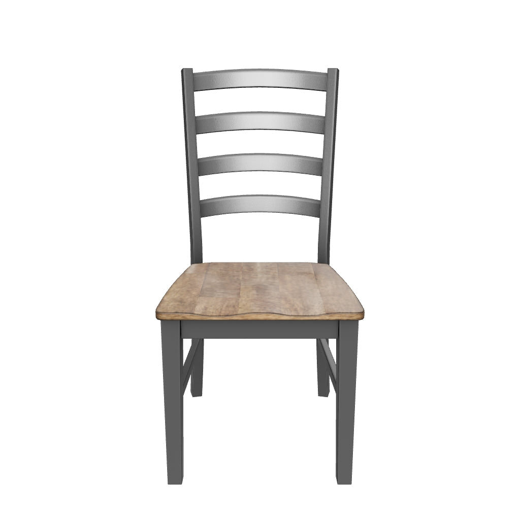 منتجات خشبية وغيرها، كرسي جانبي لغرفة الطعام (2/CN)، مصنوع من إطار من الخشب الصلب؛ مقعد من قشرة خشب المانجو وقاعدة من خشب MDF؛ تشطيب ثنائي اللون (مقعد بتشطيب بني داكن؛ إطار بتشطيب أسود ساتان دافئ)؛ تصميم ظهر سلمي؛ مقعد محدد الشكل؛ يتطلب التجميع
