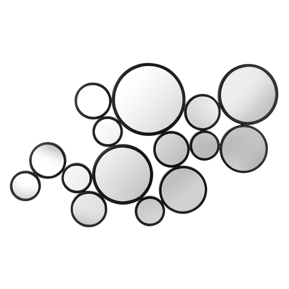 Fifteen multi-sized round mirrors combine to create a dramatic addition to your space. We love its contemporary-yet-glamorous feel.