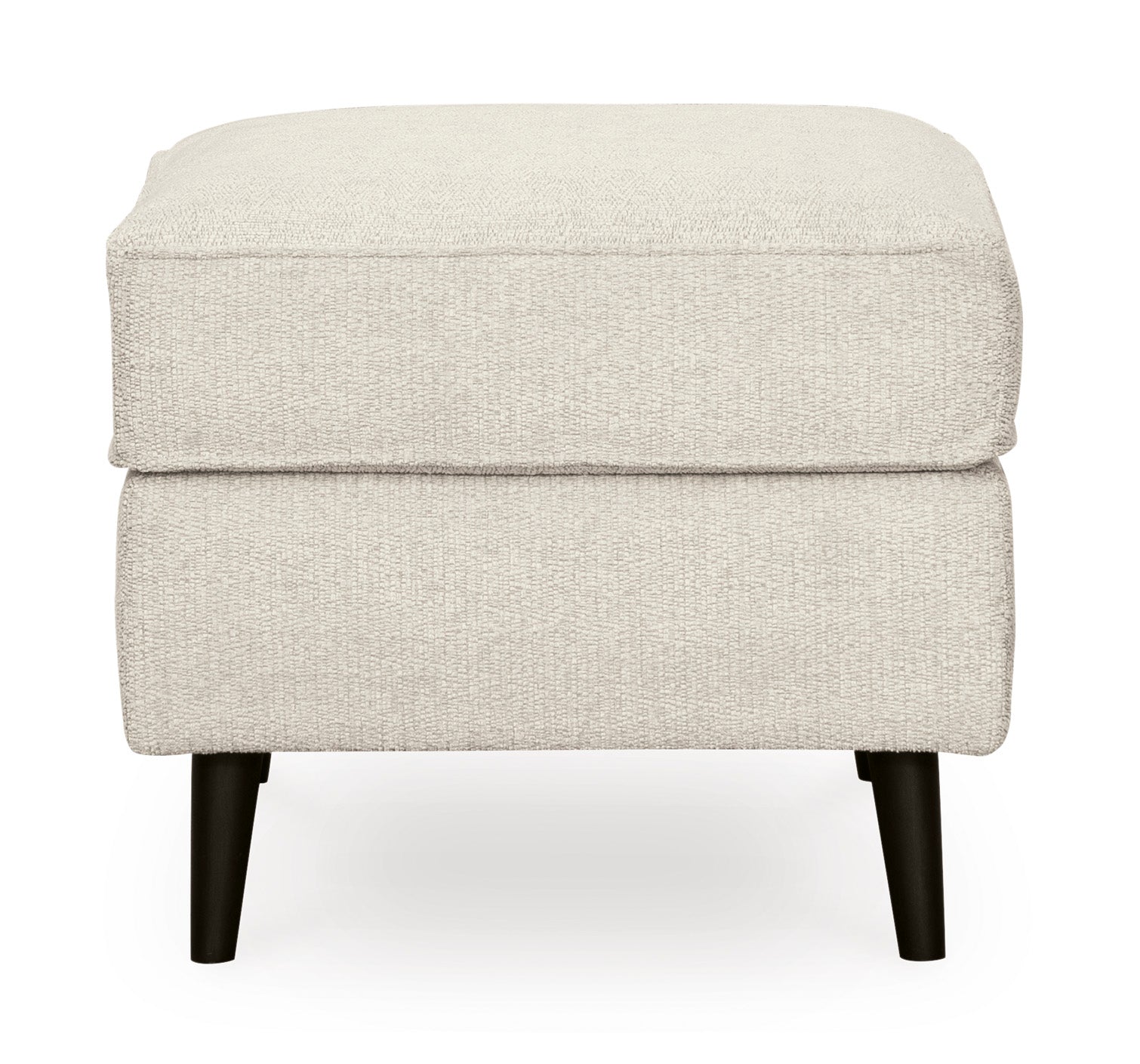 • The Maimz ottoman is mid-century revival done to perfection. Linear and minimalistic, the beautifully edited profile includes tapered legs for a signature retro aesthetic. So casually cool, the crisp fabric upholstery brings the look right into the present.