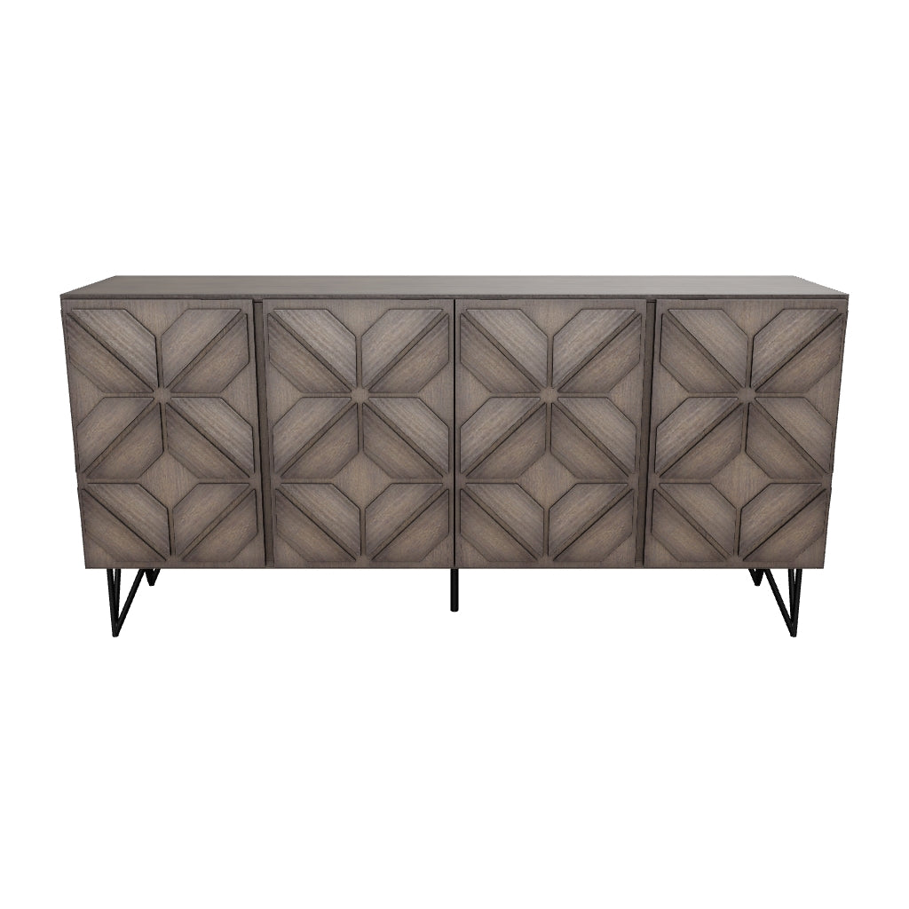 Entertain the possibilities with the Chasinfield extra large TV stand. Proving that furniture can be an art form, this sleek, chic cabinet stand—which accommodates up to 75" TVs—stands out from the crowd with a geometric overlay design that incorporates so much dimension. Adjustable shelving and cutouts for wire management make it highly accommodating. What's more, this TV stand works equally well as a dining room server or entryway console. How's that for staying power?