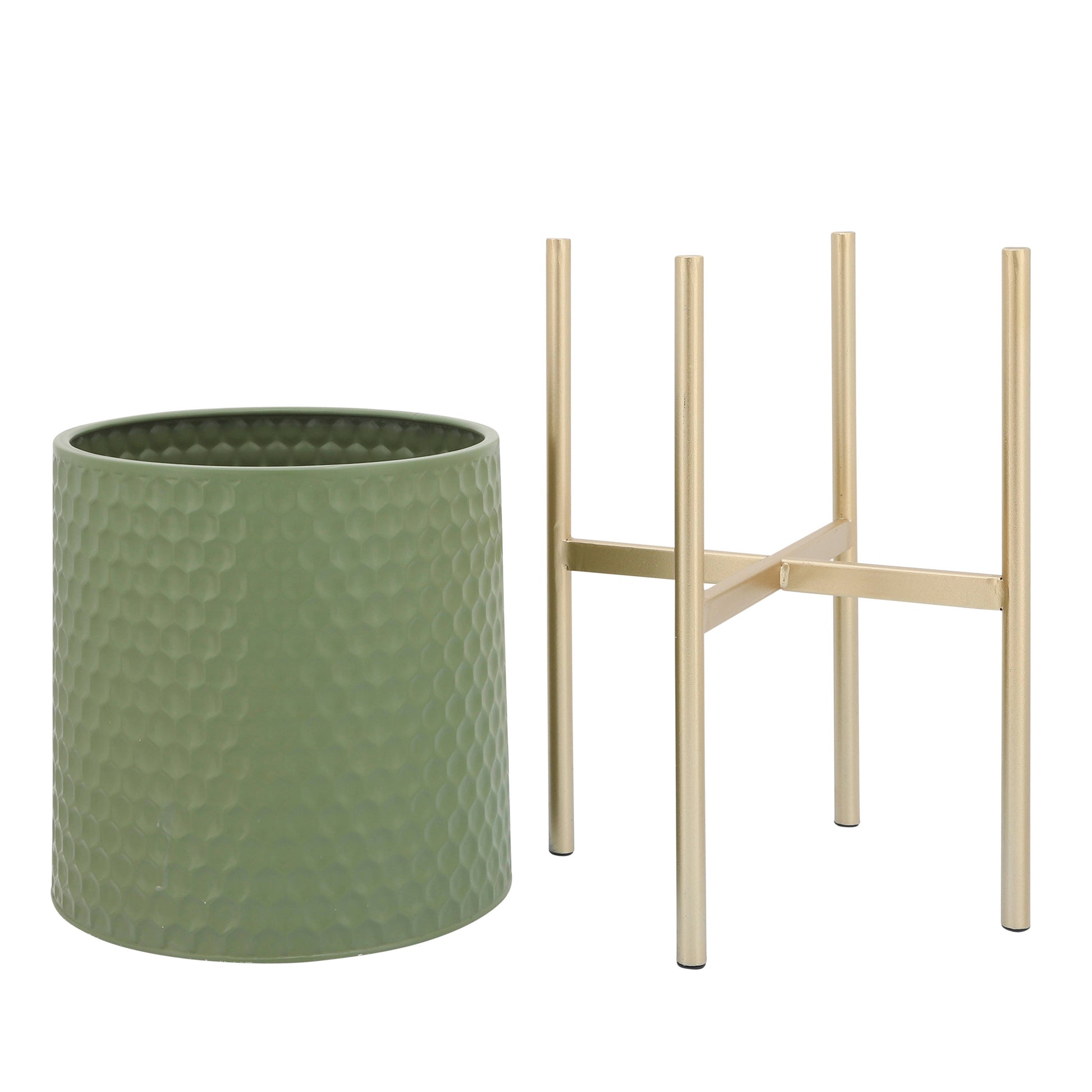 S/2 HONEYCOMB PLANTER ON METAL STAND, olive /gold