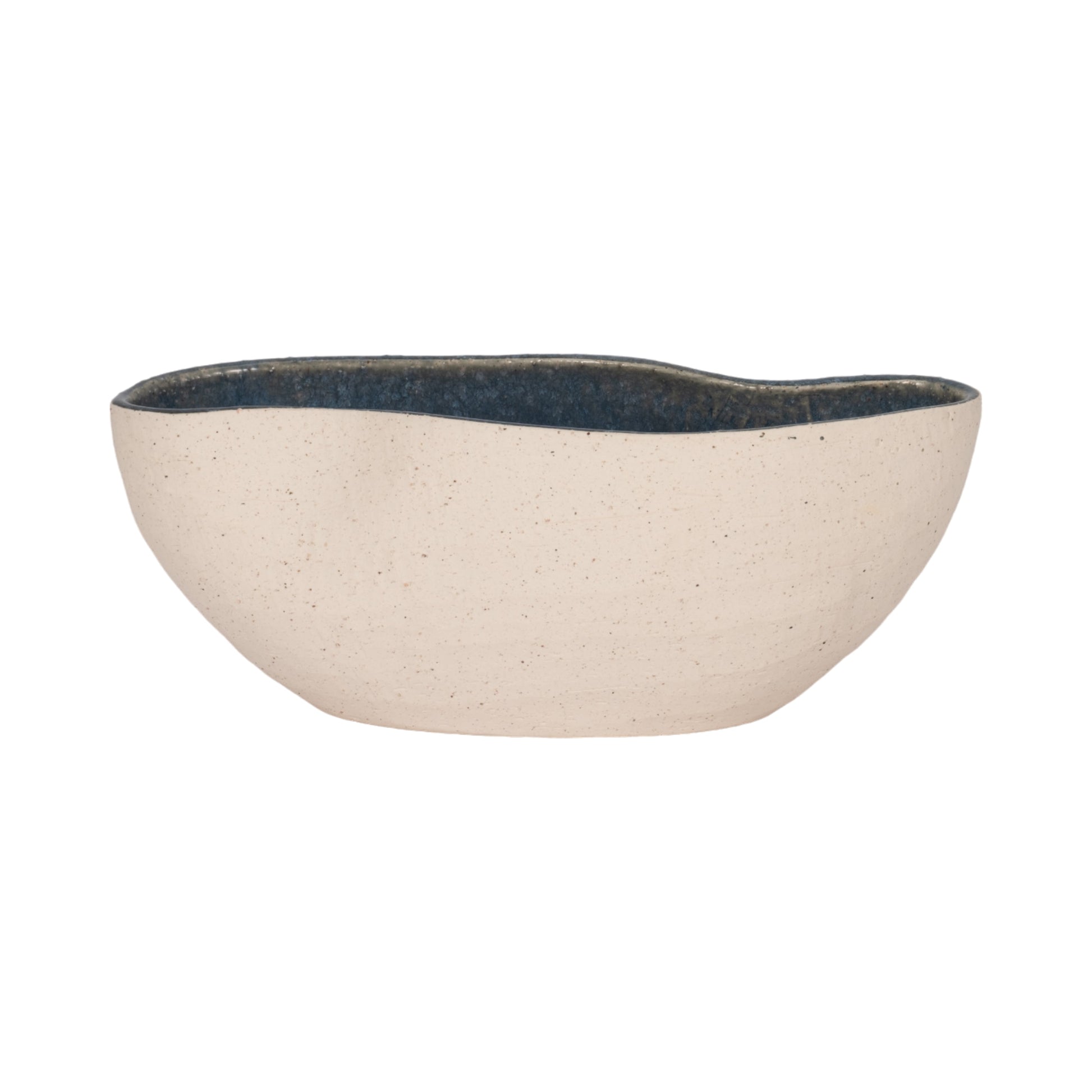 13" Reactive Curvy Oval Bowl, Blue/white
