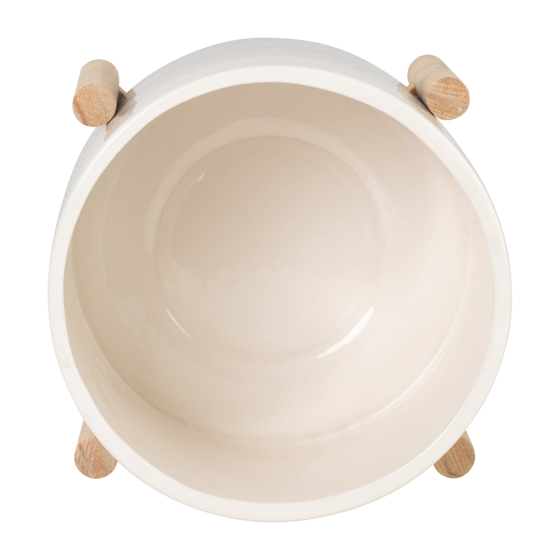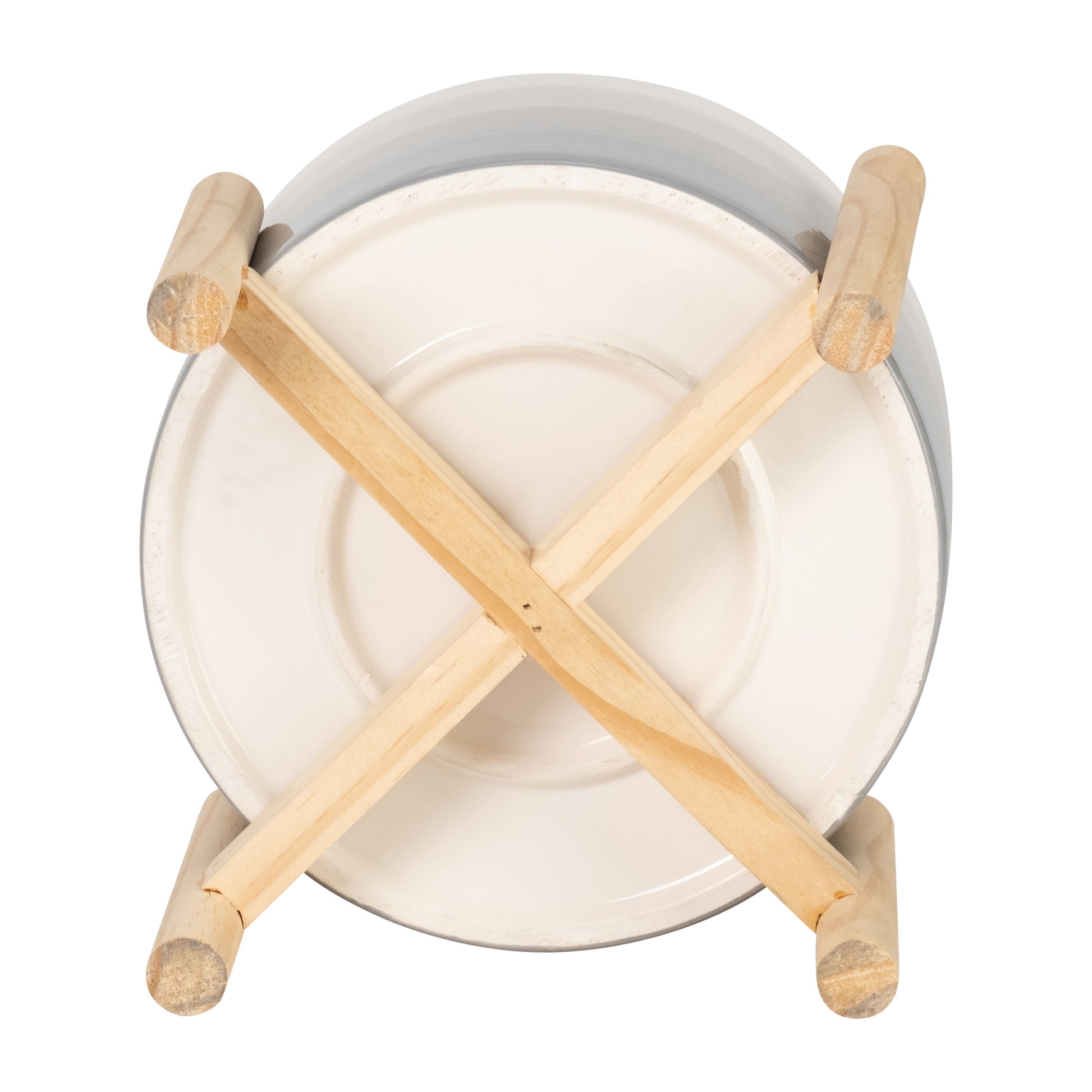 15069-02 6" CERAMIC FLUTED PLANTER W/ WOOD STAND, BLACK( Sagebrook Home )