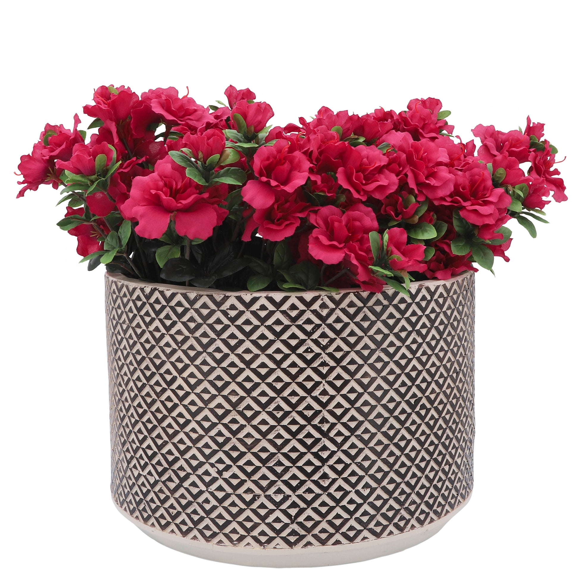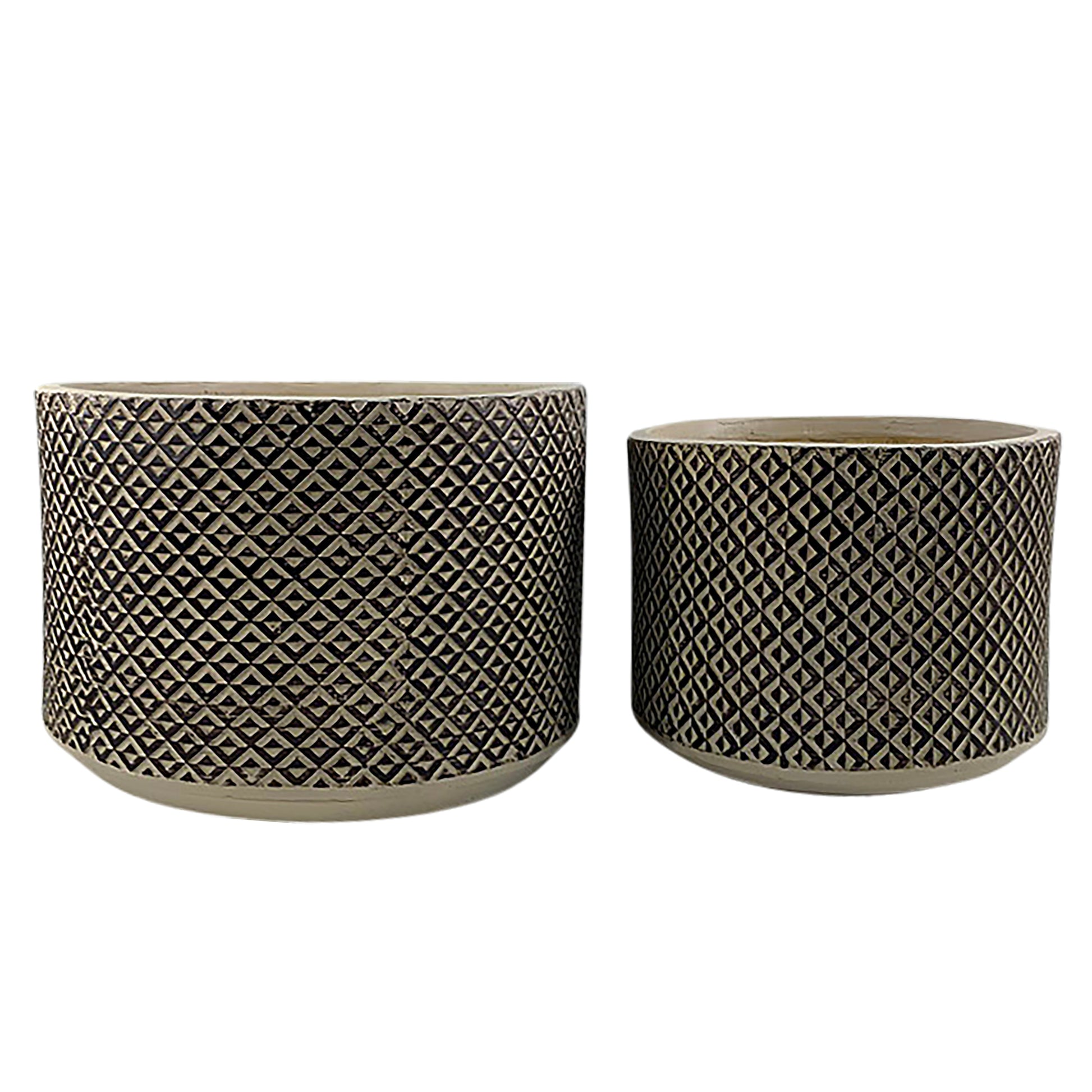 RESIN, S/2 10/13"D TRIBAL PLANTERS, BROWN