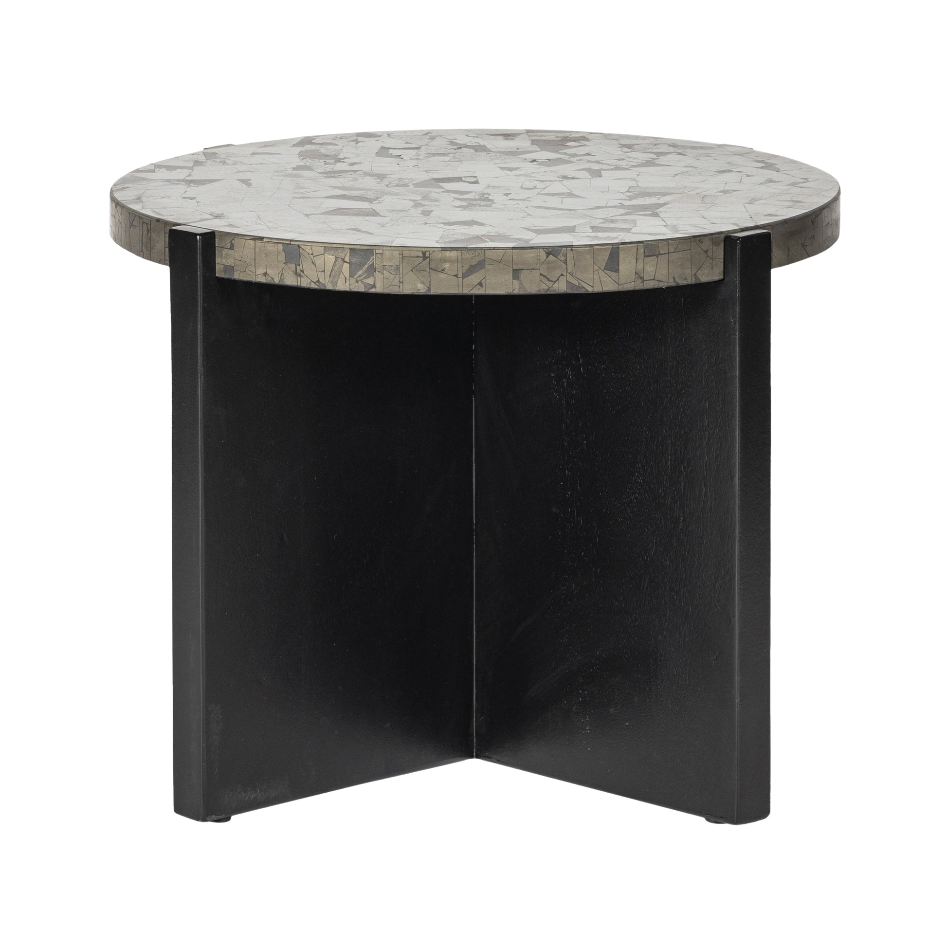 24"livio Pyrite Semi-precious Stne&wood Accent Tbl