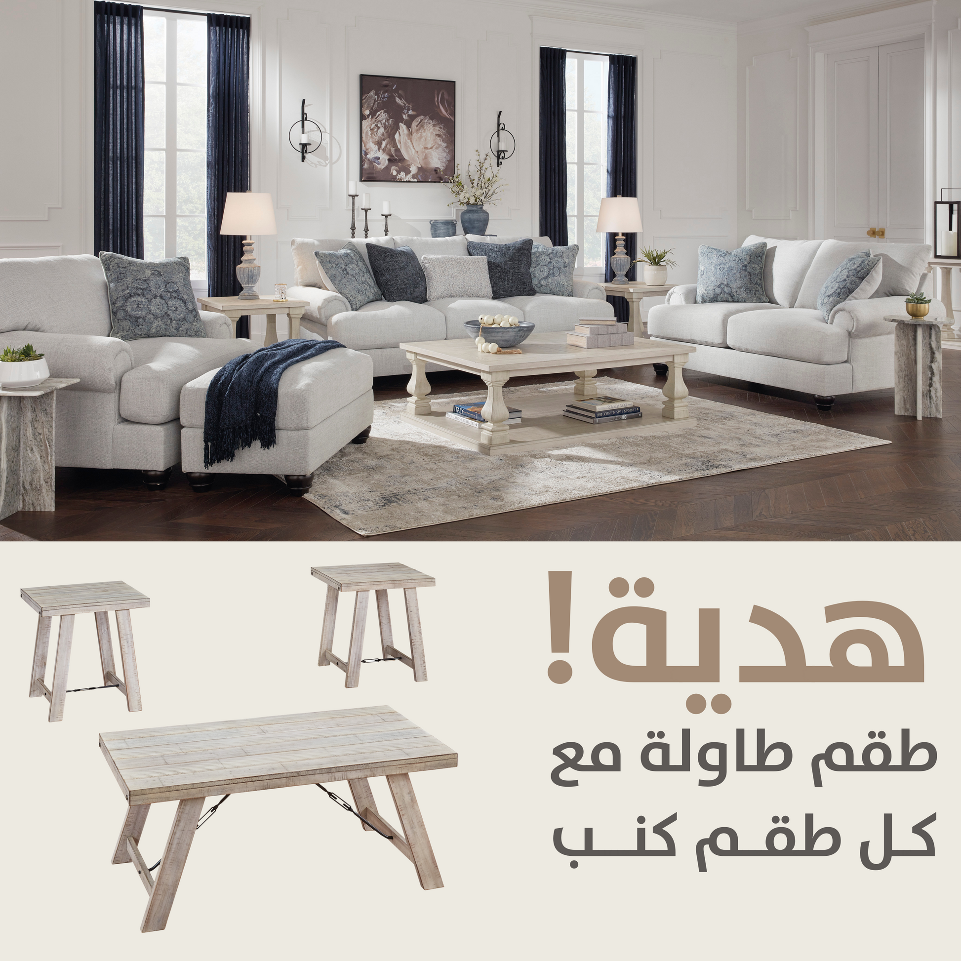 Item number Quantity Product name 2540423 1.00 Avocet Oversized Chair 2540435 1.00 Avocet Loveseat 2540438 1.00 Avocet Sofa A rustic rendition of modern farmhouse style, the Carynhurst coffee table set is right in tune with your richly relaxed sense of style. The clean yet hearty profile is enhanced with a distressed whitewash finish and offset plank-effect tabletop. Decorative tension bar and nailhead accents add an industrial twist.