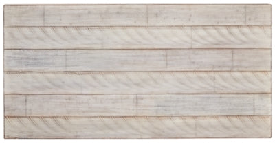 Includes coffee table and 2 end tables;Made of acacia wood, veneer and engineered wood;Distressed whitewash finish;Decorative metal tension bar and nailhead accents;Assembly required