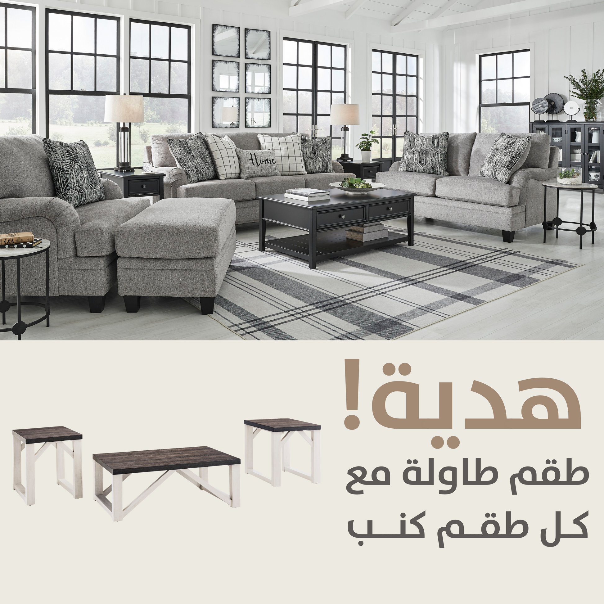 Includes coffee table and 2 end tables;Made of decorative laminate and MDF substrate;Replicated gray wood top;Antiqued white base;Assembly required