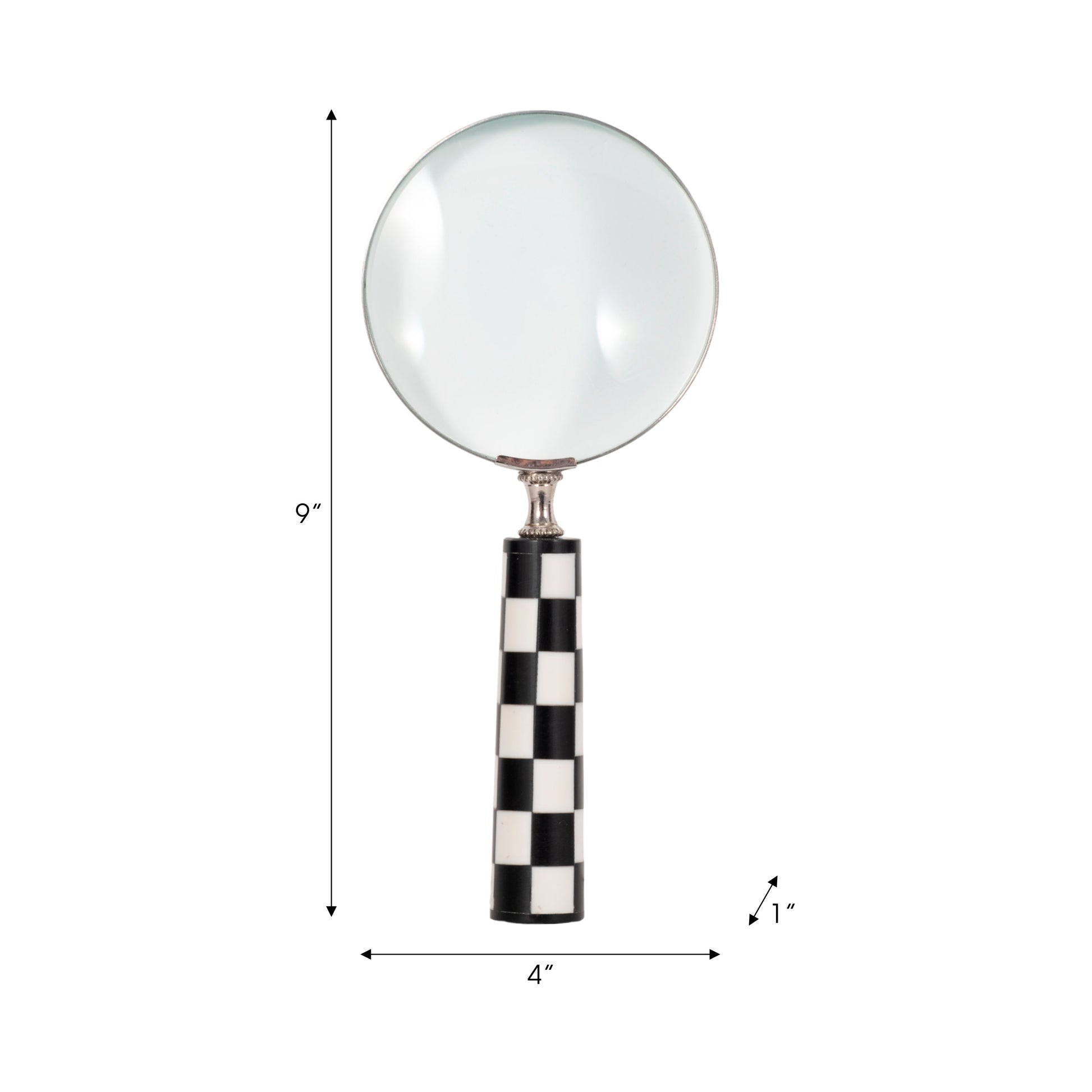 4" Checkerboard Handle Magnifying Glass, Black/whi