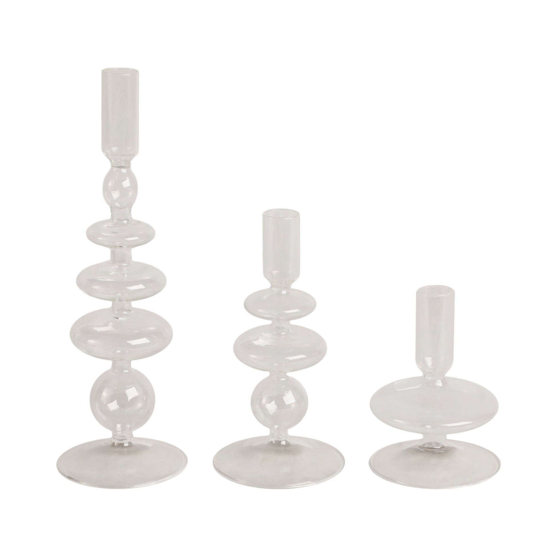 7" Vintage Glass Taper Candle Holder, Clear