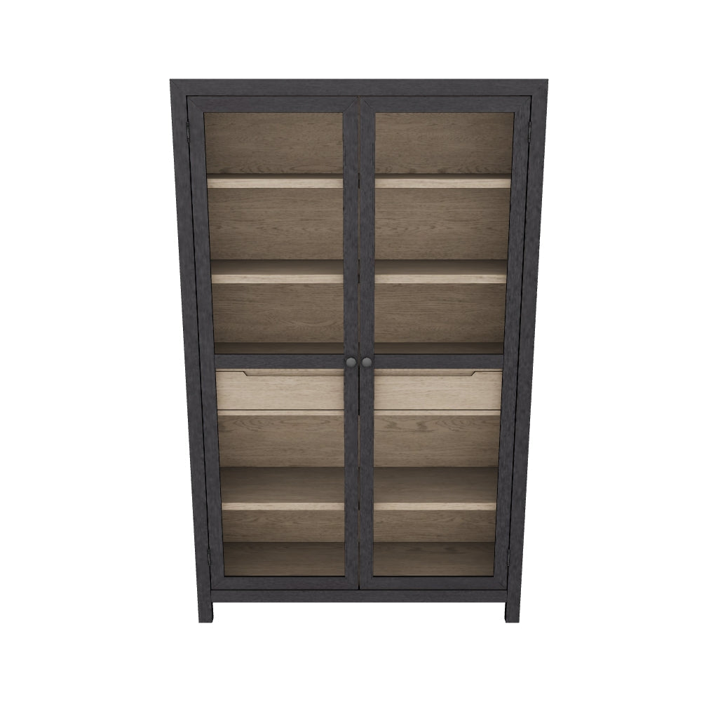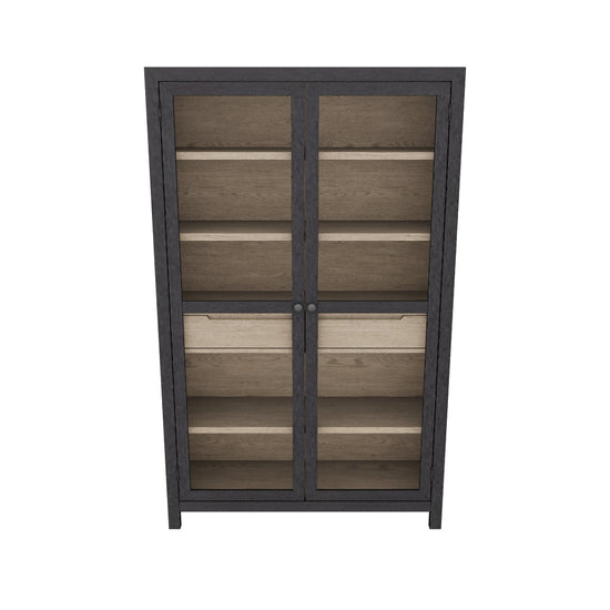 Made with wood, oak veneer and engineered wood;Black finish outside; warm gray finish inside;Glass panel door fronts;Metal door knobs with black finish;3 adjustable shelves;2 doors with soft-close hinges;1 soft-close, smooth-gliding drawer;Assembly required,Accent Cabinet