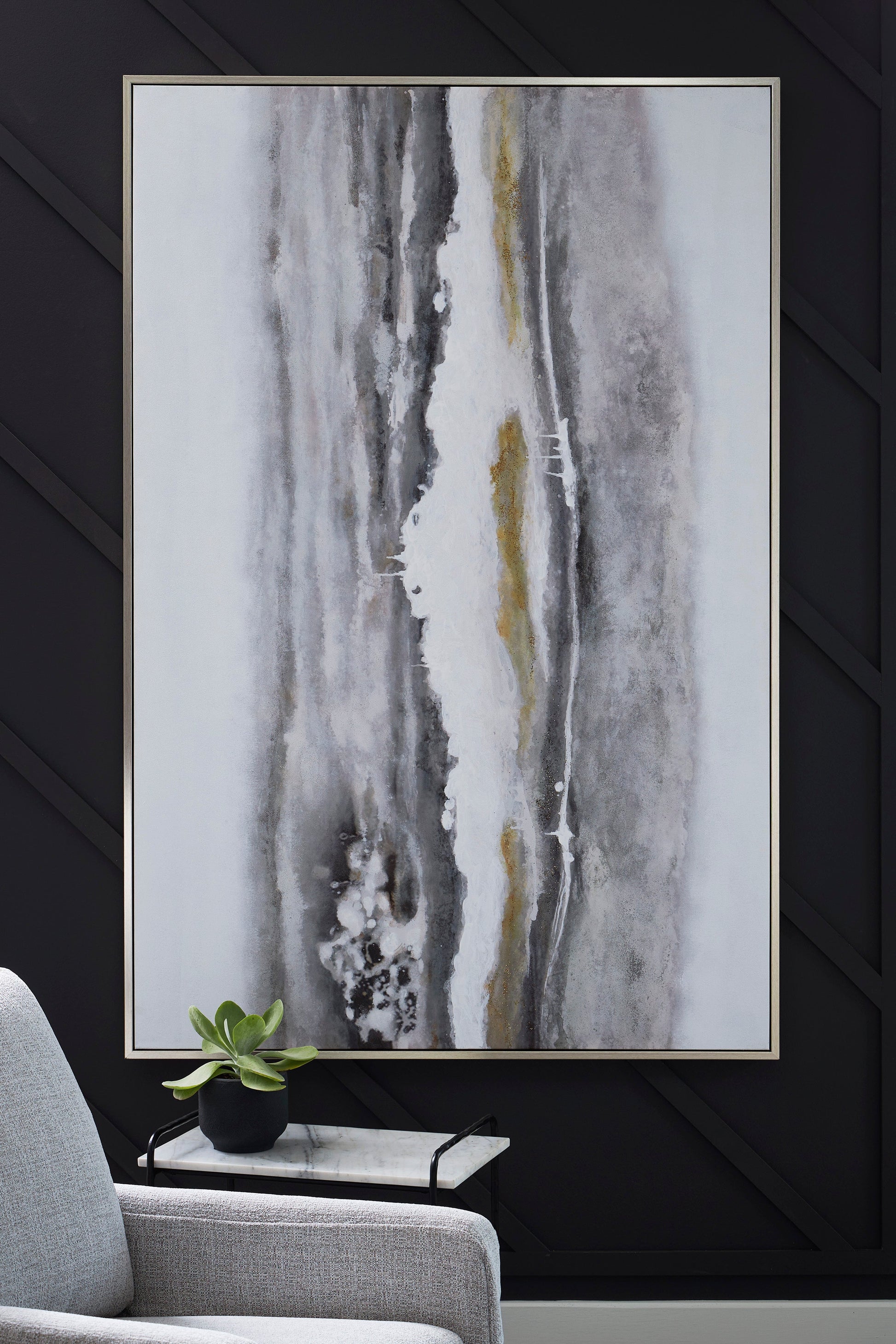 Details & OverviewAcebell Wall ArtChic as a statement piece or on a gallery wall, the Acebell wall art adds abstract flair to your decor. Its neutral hues and metallic touches have the versatility to pair with a variety of contemporary aesthetics. And when you need a fresh perspective, vertical and horizontal hanging options allow you to switch up your display.