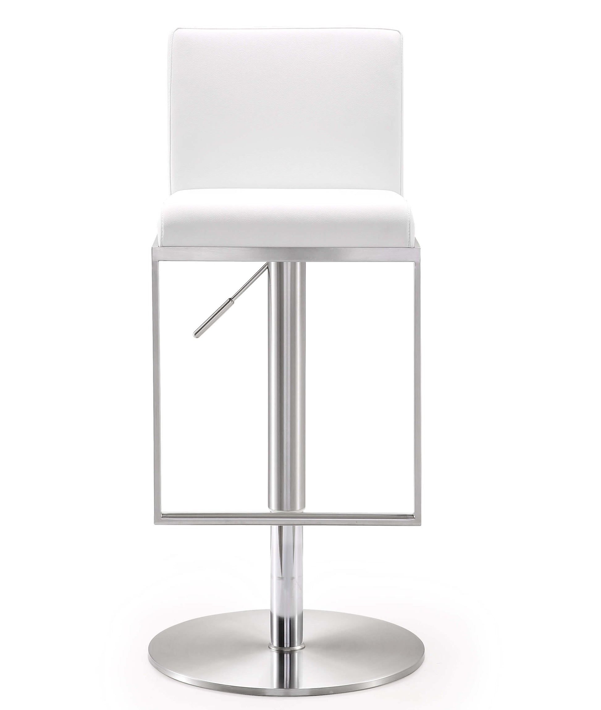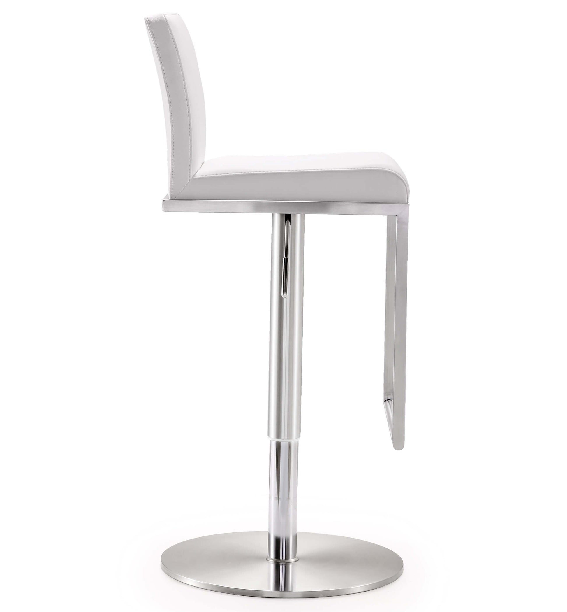 Color: White Leg Details: Stainless Steel Feature: CA117-2013 Fire Retardant Foam,Stainless steel frame and footrest,Adjustable seat height with gas lift,360Ã ‚Â ° Swivel seat,Comfortable eco leather upholstered back and seat,For residential or commercial use,Available in black, white or grey,Minor assembly required,Fabric swatch available View More of Brand TOV