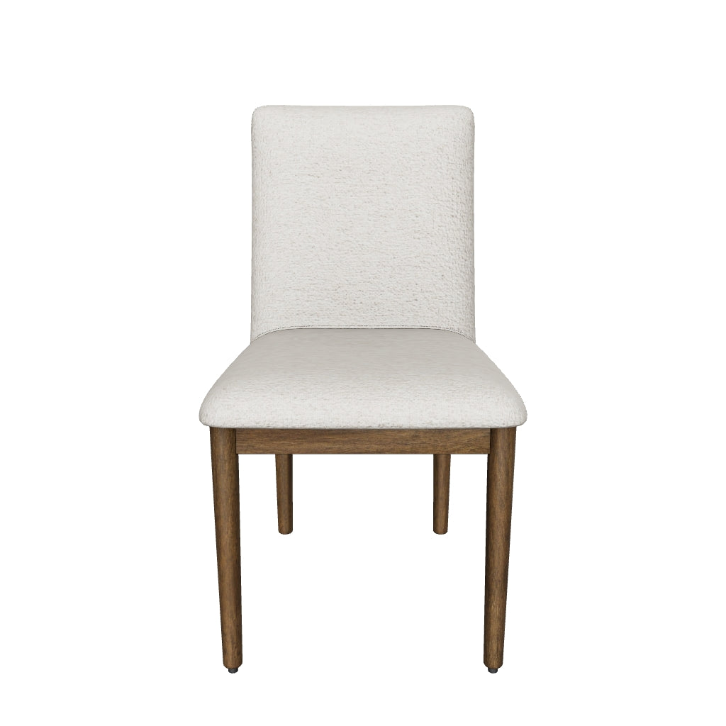 The Arkenton upholstered dining chair has all the right ingredients for modern design done to perfection. Its frame is beautifully crafted with solid hardwood. Textural tan upholstery, spindle legs and a complex grayish brown finish give the piece a contemporary edge.