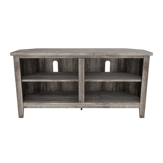 Details & OverviewWith its replicated weathered oak finish and authentic charm, the Arlenbry corner TV stand is right in tune with your relaxed approach to high style. Beautifully shaped to nestle into any corner, it’s well equipped with shelving and cutouts for wire management. What a mastery in modern farmhouse living for small spaces.