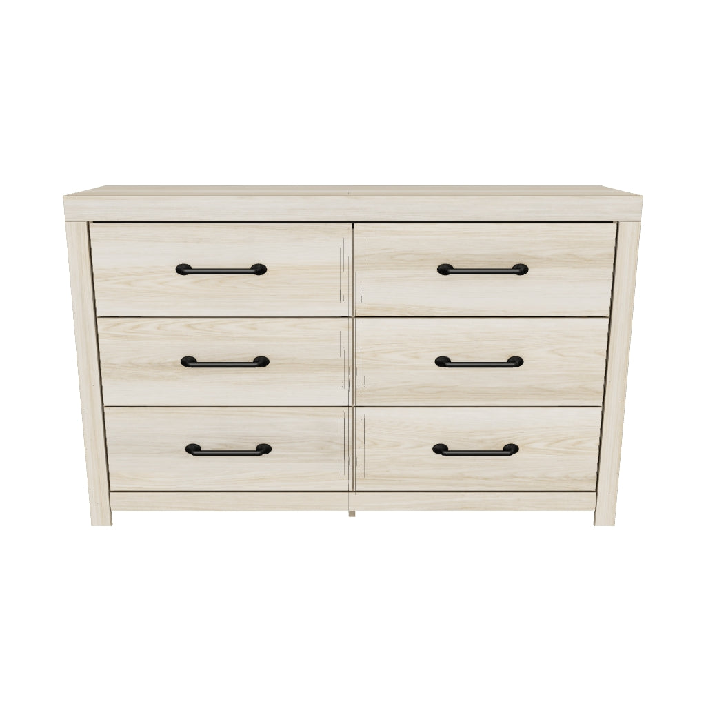 Wood Products and Other, Six Drawer Dresser, , Made with engineered wood (MDF/particleboard/plywood) and decorative laminate for the right balance of affordability and durability;Natural finish with replicated wood grain;Decorative laminate replicates natural or man-made material surfaces with consistent color, pattern and texture;6 smooth-gliding drawers;Drawer interiors are lined with a faux linen laminate for a clean, finished look;Large-scale hardware with dark finish;Safety is a top priority, clothing storage units are designed to meet the most current standard for stability, ASTM F 2057 (ASTM International);Drawers extend out to accommodate maximum access to drawer interior while maintaining safety;Minor assembly required