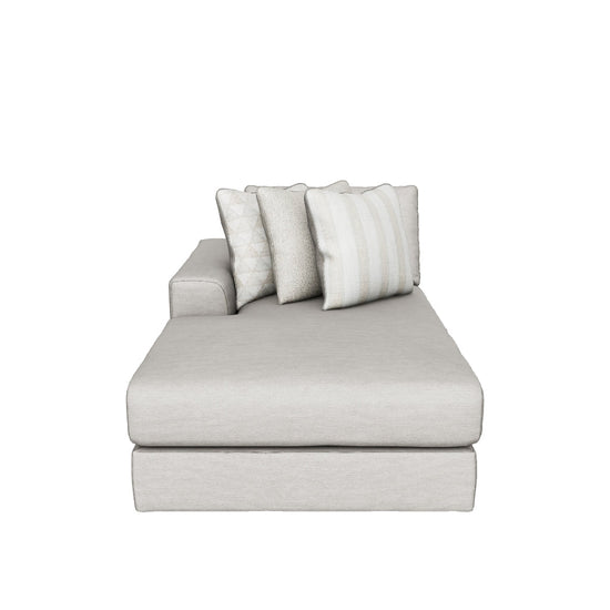 This left-arm facing corner chaise is made with polyester chenille and polyester upholstery. Fully finished on all sides, it pairs with other items in the series to make a modular sectional.
