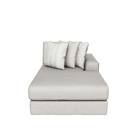 This right-arm facing corner chaise is made with polyester chenille and polyester upholstery. Fully finished on all sides, it pairs with other items in the series to make a modular sectional.