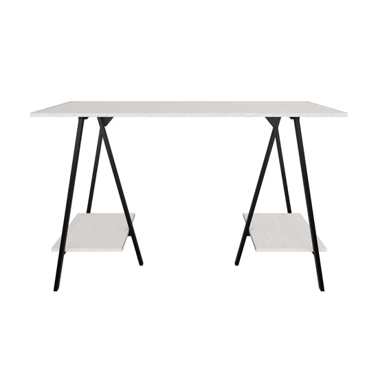 Love an urban farmhouse aesthetic? Make it work to your advantage with the beautifully styled Bayflynn home office desk. A simply striking choice in home office furniture, it has an unmistakable farmhouse feel thanks to a whitewashed finish and gunmetal accents. This minimalist-chic desk with open storage shelves and sawhorse legs gives you plenty of options when working on homework, doing art projects, or just relaxing.