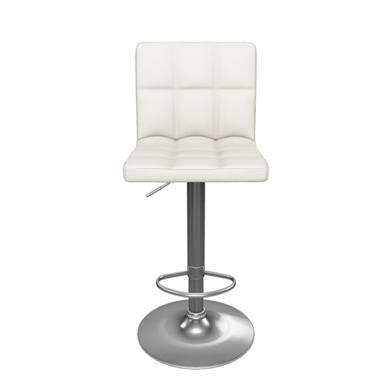 Here's a bar stool that rises to the occasion. It is sleek and modern with a chrome-tone finish. Square-tufted, bone-colored faux leather upholstery makes this barstool pop. It easily adjusts from counter to pub height making it as versatile as it is attractive. This tall swivel barstool is a perfect seat for any trendy home bar or game room.
