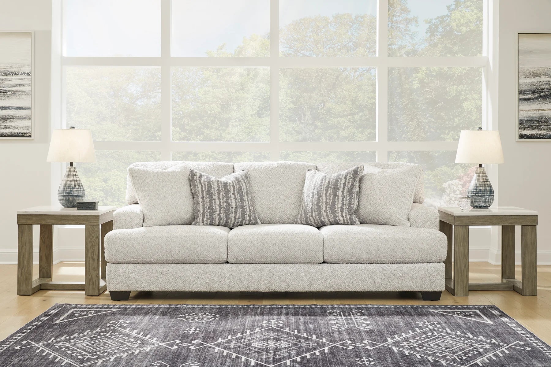 The Brebryan sofa speaks to those drawn to fresh, contemporary style with richly neutral appeal. Wrapped in a wonderfully plush fabric loaded with multi-tonal interest, this on-trend piece has a warm, welcoming charm. Coordinating accent pillows add to the indulgence. Kick back, relax and settle in for comfort with this cool addition for modern spaces.