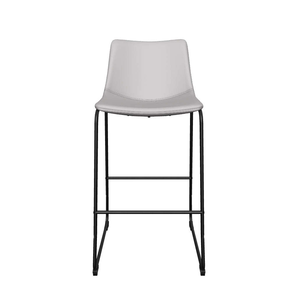 With its distinctive contoured bucket seat and tubular metal base, the Centiar bar stool serves up a fresh twist on mid-century inspired style. Chic gray faux leather upholstery adds to the aesthetic. What a timeless look for eat-in kitchens and casually cool dining rooms.