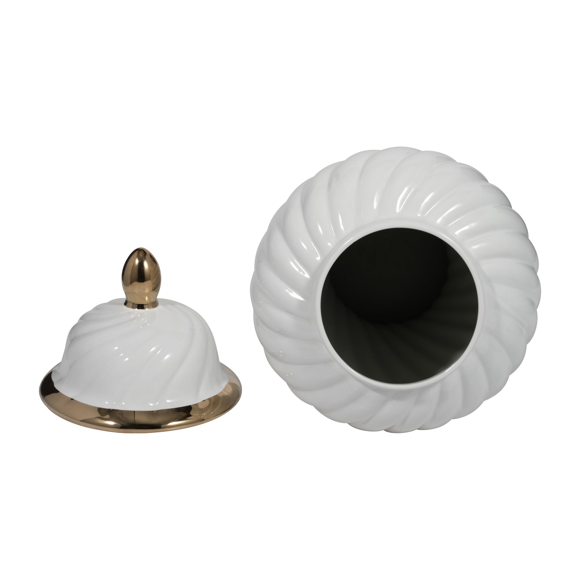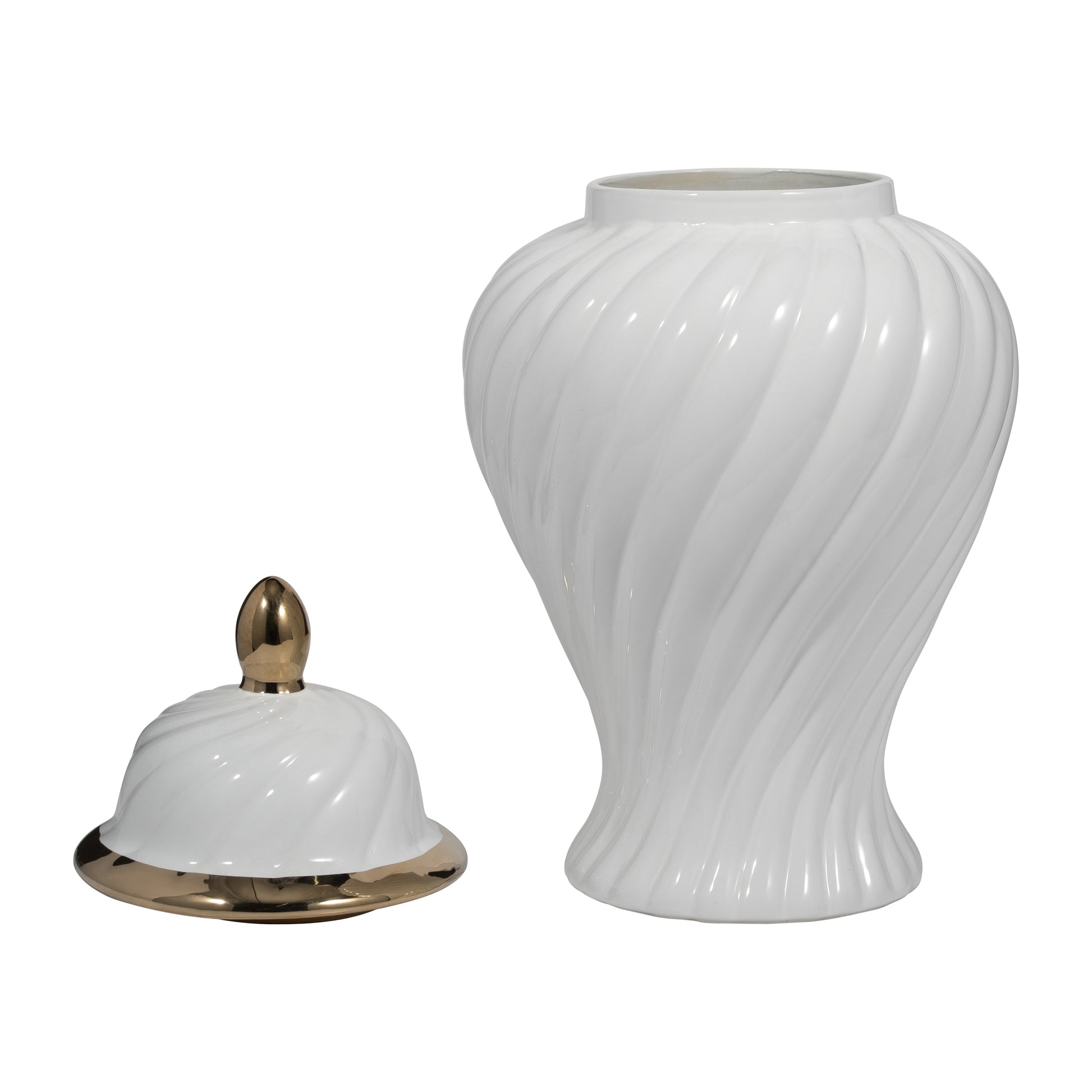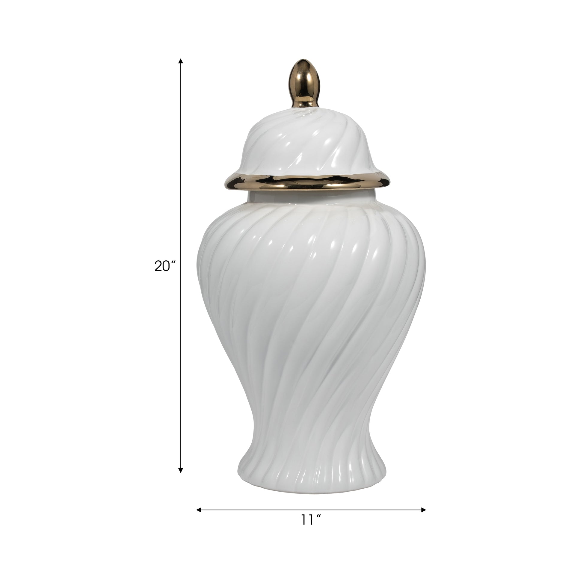Cer, 20" Swirl Temple Jar, White/gold