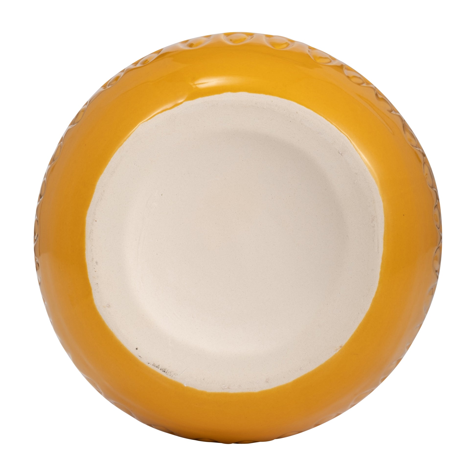 CER, 8"H CARVED VASE, MUSTARD GOLD
