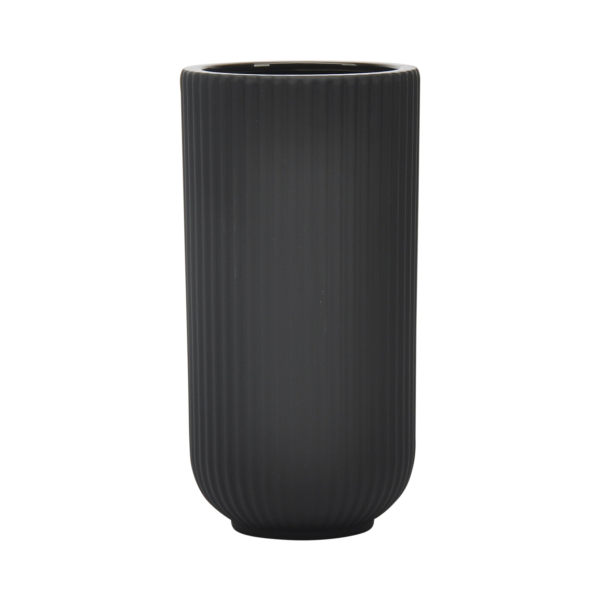 CER, 9"H RIDGED VASE, BLACK
