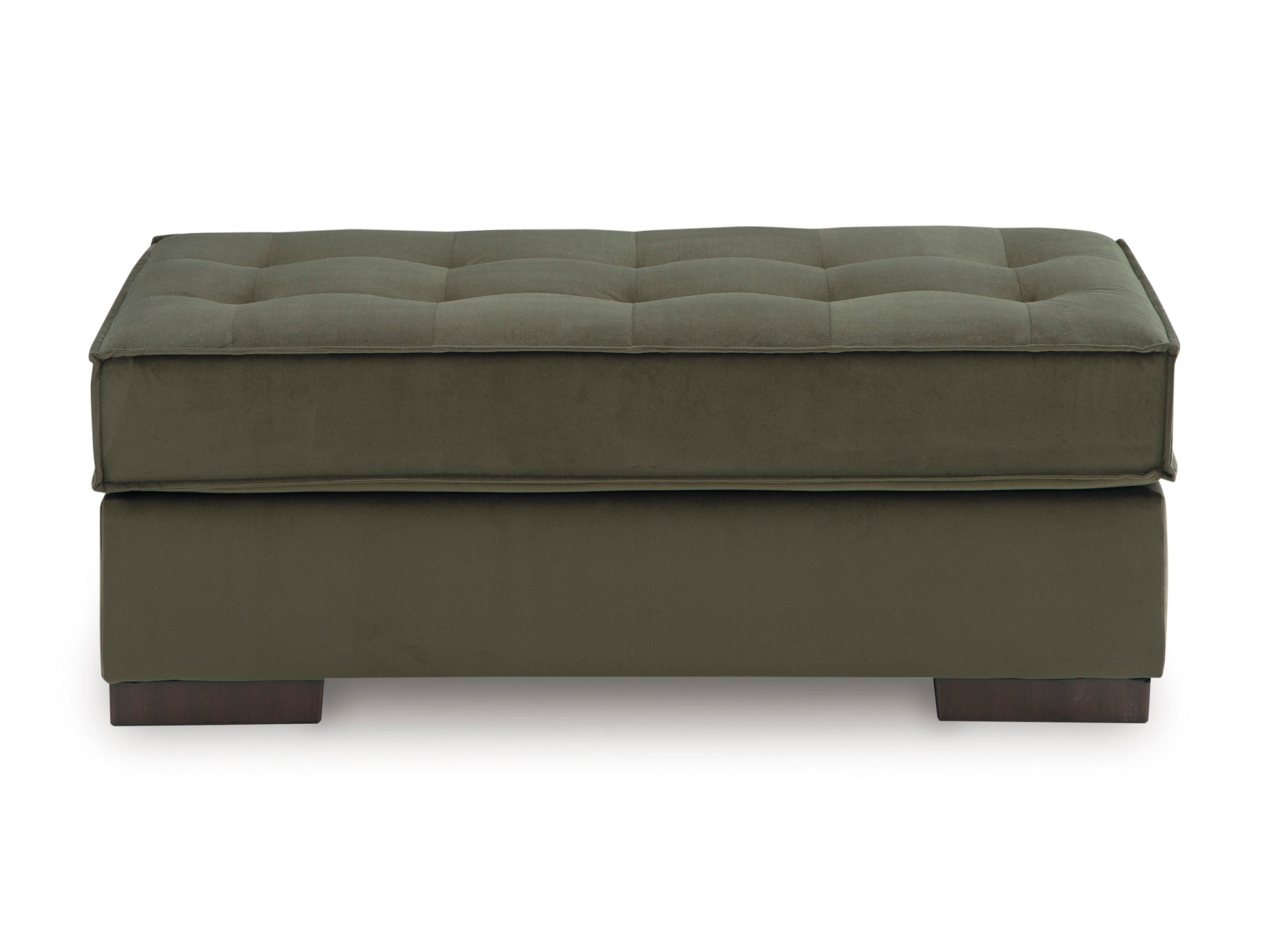 The sleek Chalcombe oversized accent ottoman offers a highly contemporary look with plenty of space to spread out. Dramatic tufted detailing and luxurious upholstery in a rich olive color create a sophisticated atmosphere. This ottoman is perfect for those who love to entertain, or simply relax, in uptown style and comfort.