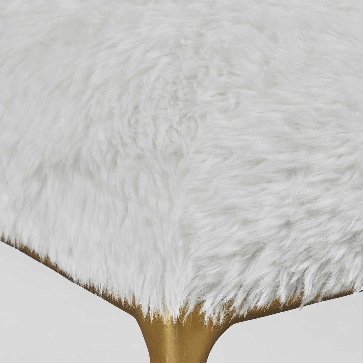 A textural glam accent featuring a lush long-haired faux sheepskin in cream paired with a solid wrought iron base with chiseled texturing finished in soft gold.Item Dimension (cm ) :