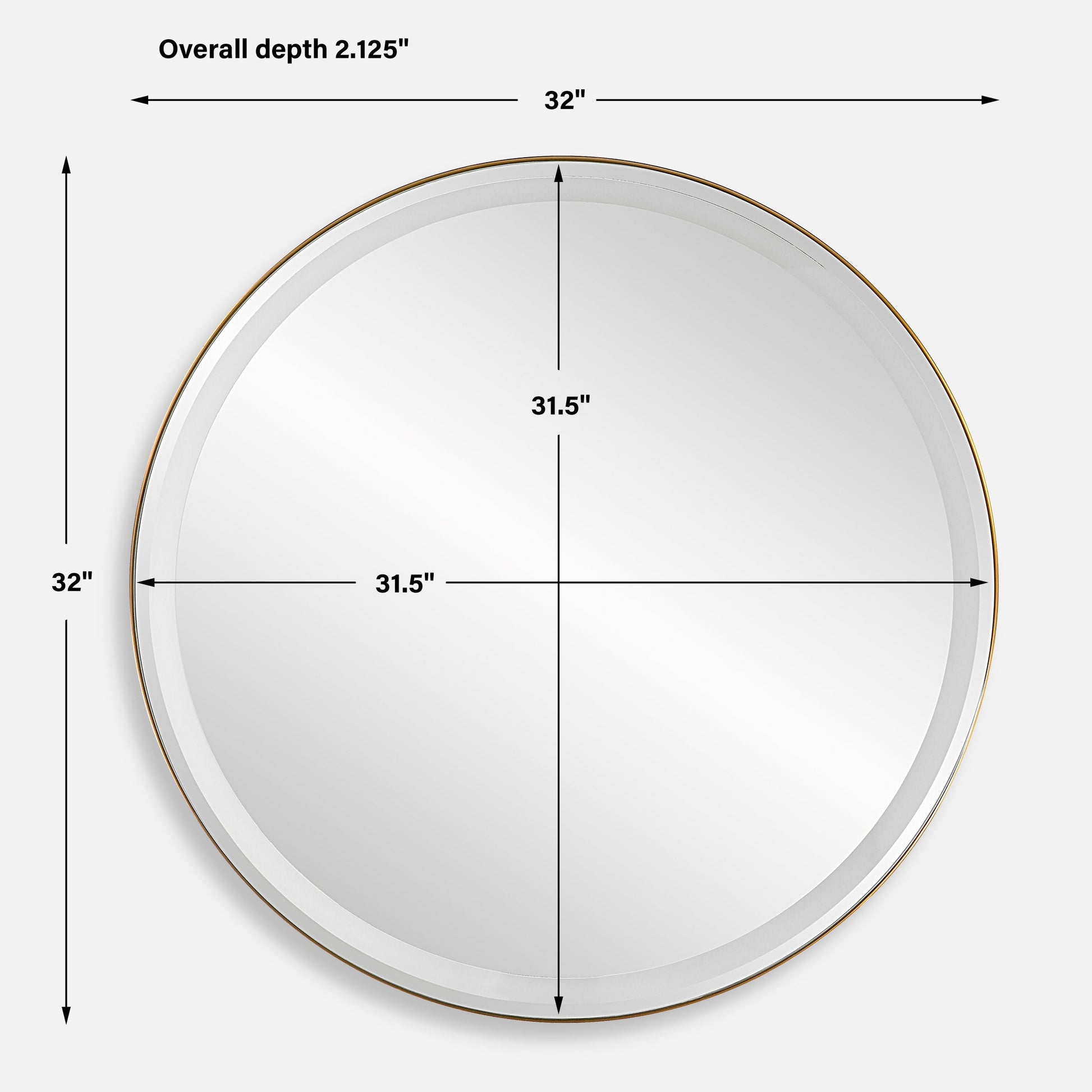 Versatile in design, this round mirror has integrated LED lighting that illuminates through the frosted strip in the polished edged mirror. The plated brushed brass stainless steel frame is off set from the wall to allow ambient lighting from the back. Easy to use touch buttons are featured on the bottom right of the mirror with an on off function, touch and hold kelvin control from 2700k to 4000k, and touch and hold brightness control. LED lights rated at 40,000 hours. Ships with plug, but can be hardwired professionally. Touch screen icons continue to illuminate when powered off for easy navigation in dark settings.Item Dimension (cm ) :