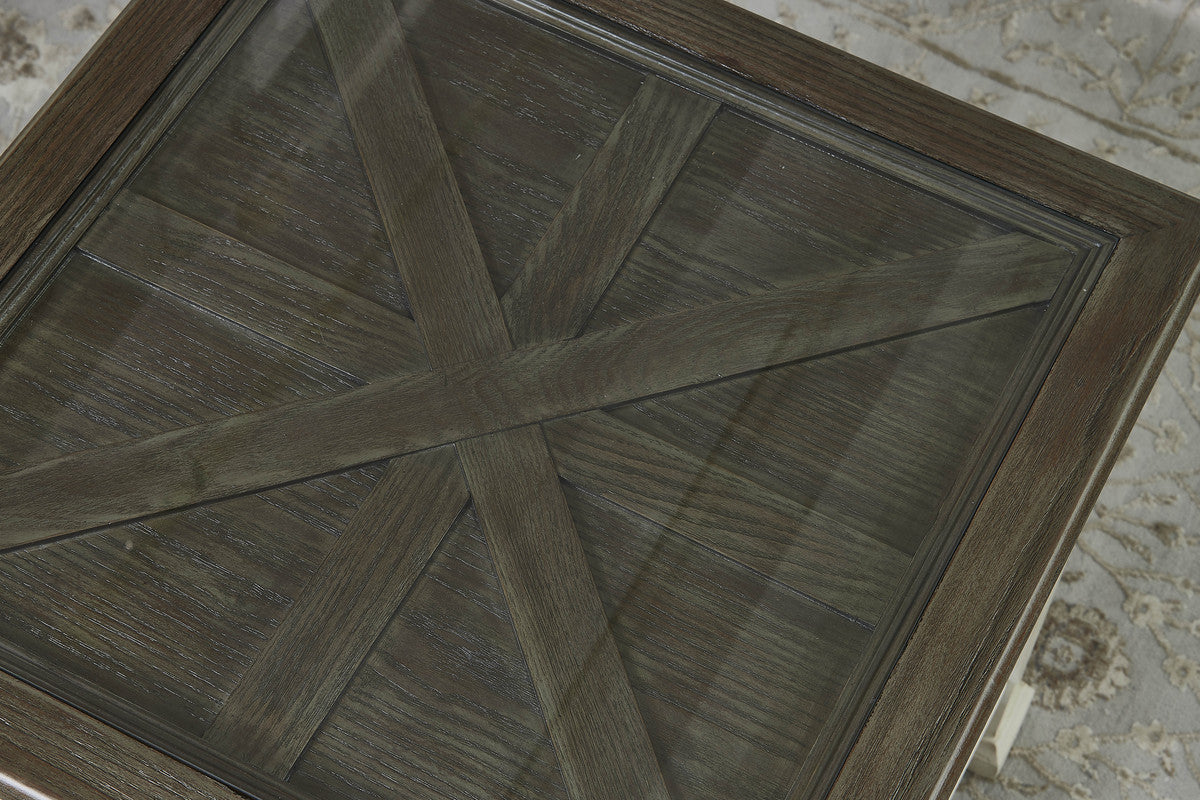 Material Ash veneer top with beveled tempered glass+ Solid wood legs